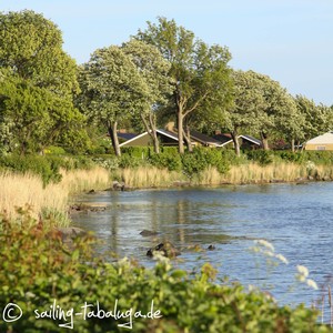 Der Tag beginnt mit strahlendem Sonnenschein und Wind aus der falschen Richtung. Wir wollen durch den Guldborgsund, den wir im letzten Jahr bei strömendem Regen durchquert haben. Der Sund ist eng und teils flach, aber wir fahren vorsichtig unter Motor schön ordentlich in der betonnten Fahrrinne.
