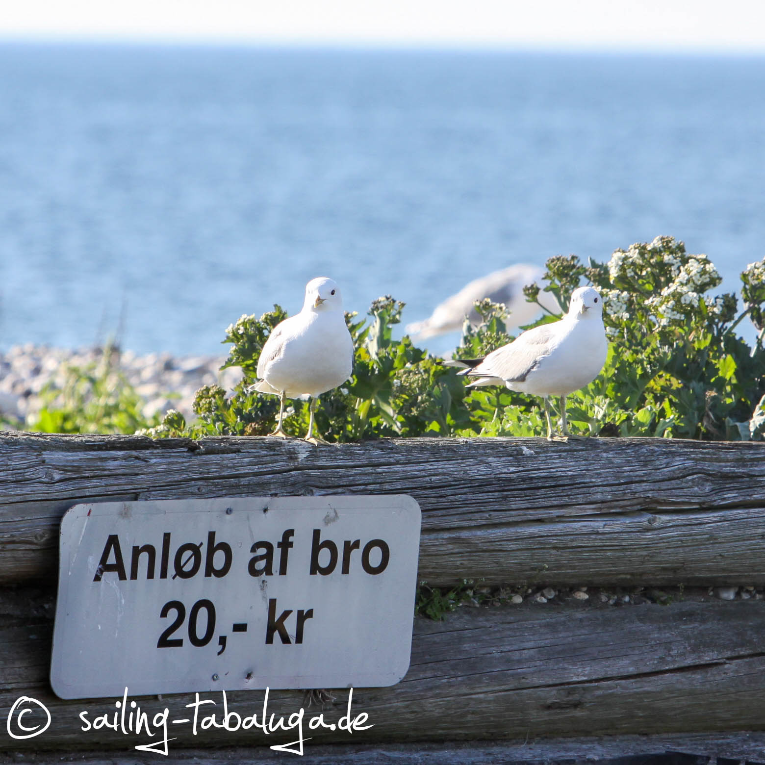 Nach der Store Belt Brücke, die uns immer wieder beeindruckt, ob von der Color Line oder unserer kleinen Tabaluga aus, setzen wir den Blister. Der bringt uns endlich auf 4,5kn Geschwindigkeit und wir erreichen eine kleine Vogelinsel namens Musholm. Angeblich unbewohnt, was aber so nicht ganz stimmt. Möwen, Enten und andere Vogelarten brüten hier und sind in der Tat “not amused” uns zu sehen. Wenige andere Boote sind da, erlaubt ist es schon, hier an Land zu gehen, aber die Tiere zeigen einem sehr deutlich was sie davon halten. Wir schleichen vorsichtig eine Runde über die Insel und verholen uns wieder artig an Deck. Kaum sitzen wir beim Abendessen, kommt aber doch glatt eine Möwenschar an und schaut, was es zu essen gibt. Erst meckern, dann betteln, also ehrlich…!