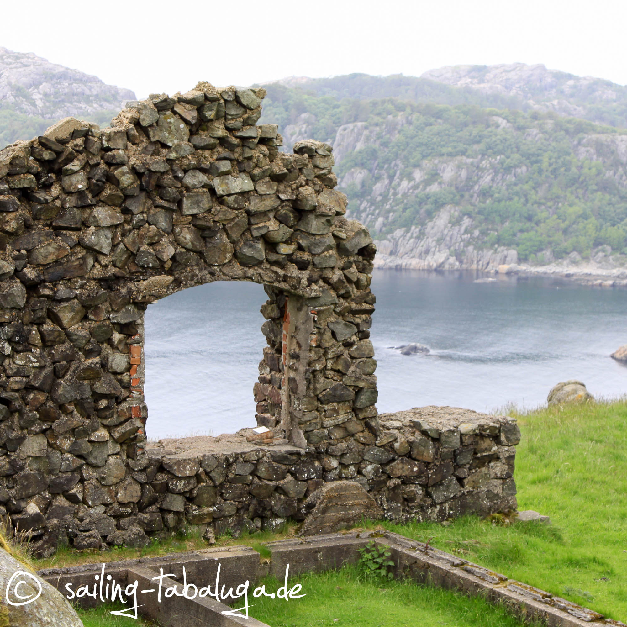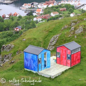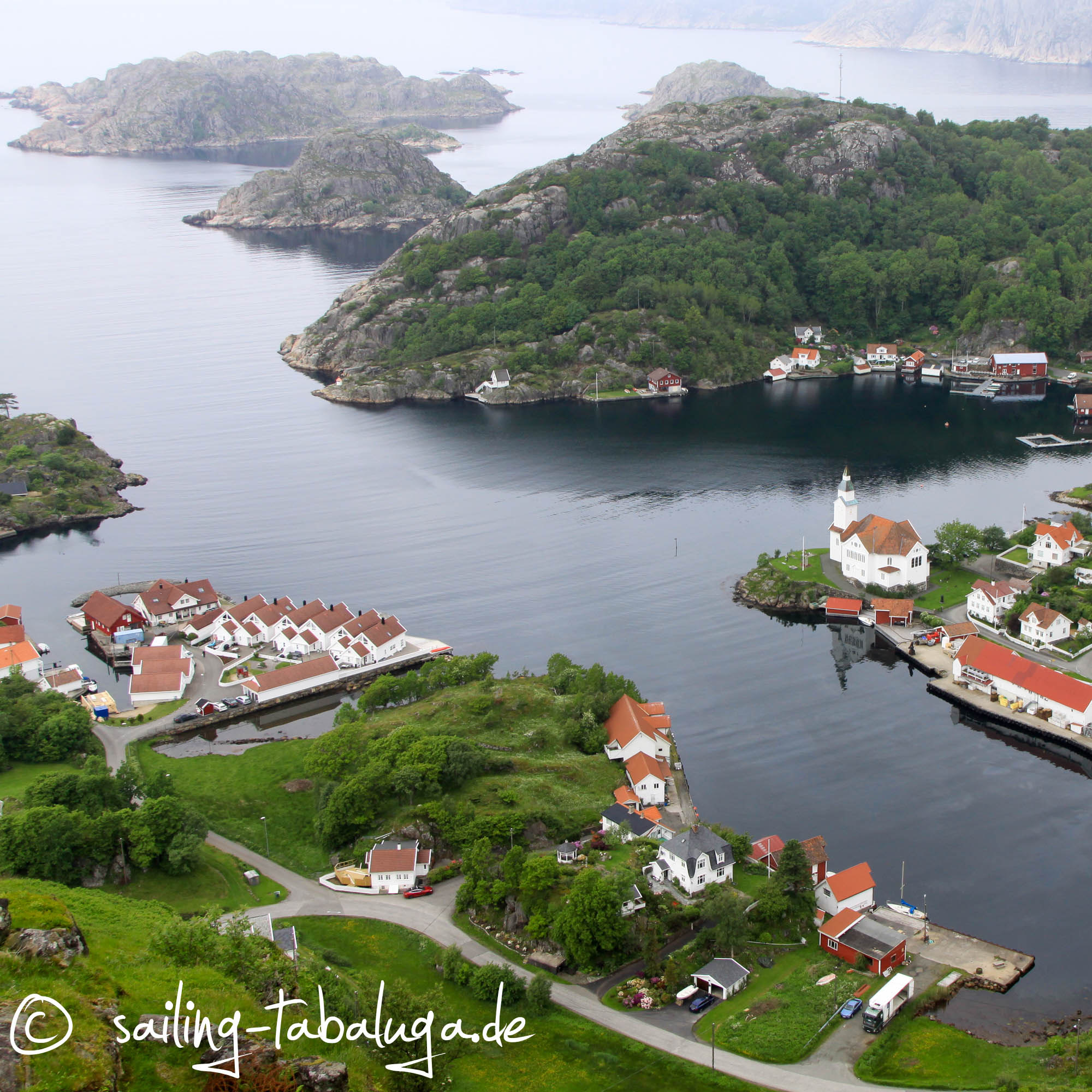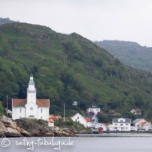 Wir lesen, dass hier “relatively high humidity” herrschen würde und können das nur bestätigen. Kurz nach unserer Ankunft zieht Nebel auf, es weht kein Lüftchen mehr. Nach dem Abendessen gehen wir eine Runde spazieren und treffen einen sehr netten Norweger, der uns gleich anspricht, ob wir die deutschen und französischen Segler im Hafen wären. Der Verdacht liegt nahe, da sich wohl wirklich wenige Touristen hier hin verirren, jeder jeden kennt und auch nur Platz für einige wenige Gastboote ist. Wir plaudern ein wenig und am nächsten Tag versorgt er uns sogar mit frischem, selbstgefangenen Fisch (nicht für mich, aber die anderen freuen sich um so mehr).