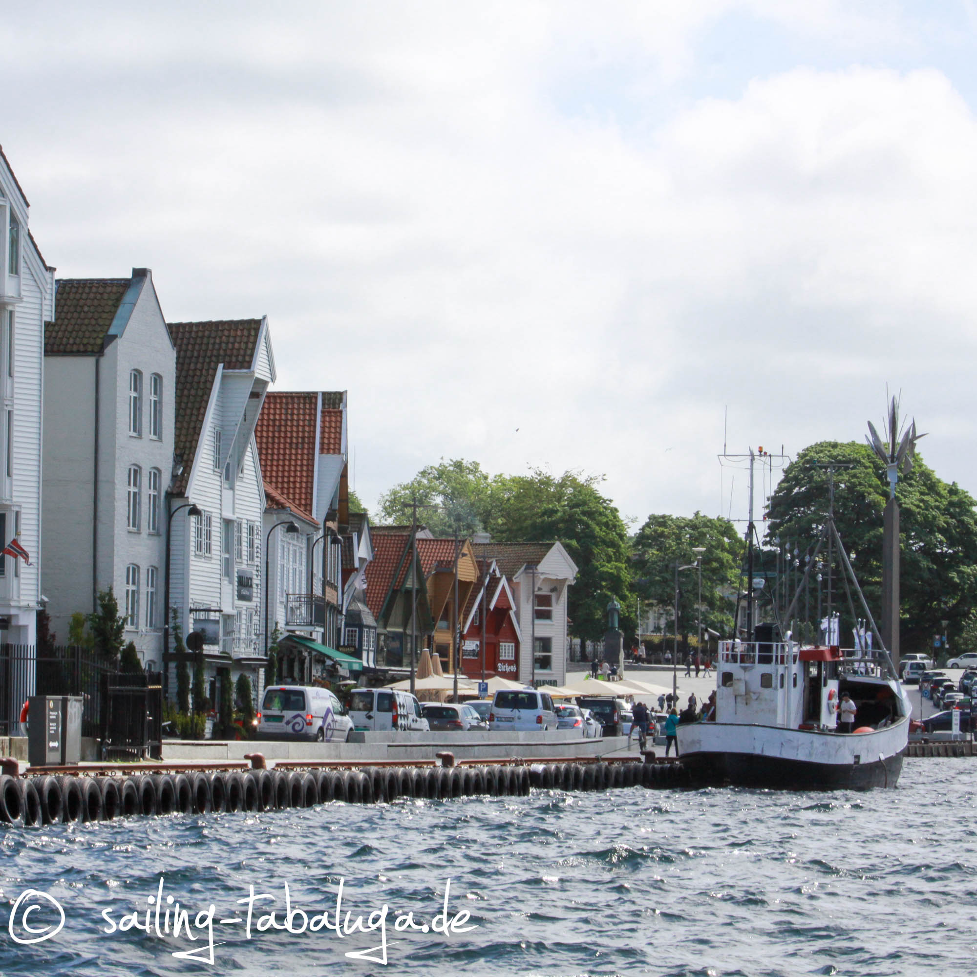 Das waren Bernds Worte noch in Stavanger, nachdem wir doch einige sehr reizvolle Plakate für Rundfahrten gesehen haben. Aber die Rundfahrt machen wir mit dem eigenen Boot! Unser eigentlicher Plan war, hier ein Auto zu mieten und über die Hochebene Hardangervidda nach Bergen zu fahren. Aber leider war zumindest in der Stadt kein Auto für das Wochenende mehr verfügbar. Am Flughafen wäre es gegangen, aber die Preise waren für das Wochenende deutlich höher als unter der Woche. So verschieben wir den Plan, mal an Land zu reisen und segeln Richtung Lysefjord.