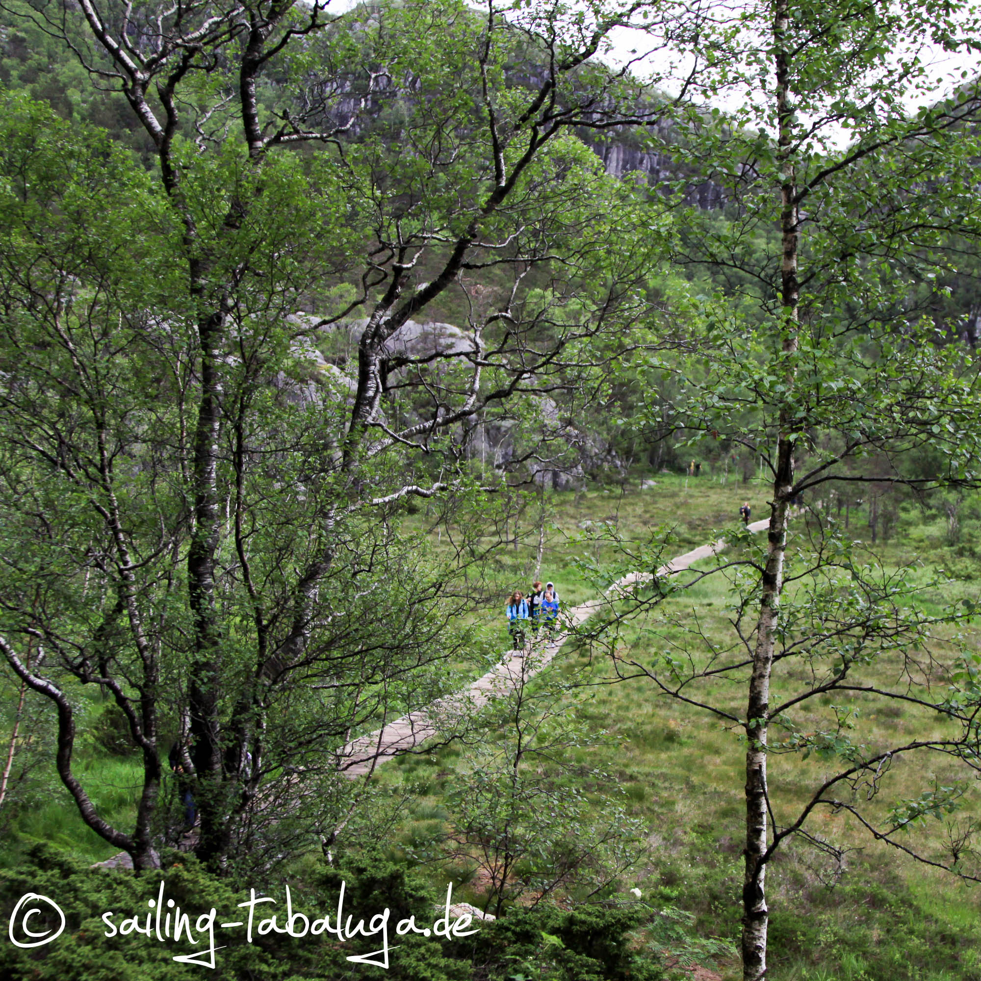 Wir rüsten uns für den Aufstieg zum Preikestolen. Wir haben ihn von unten gesehen, jetzt wollen wir auch hoch. Der erste Schreck kommt beim Parkplatz. Satte 22€ werden wir dafür schon los. Überhaupt merken wir in den nächsten Tagen, wie wahnsinnig teuer Norwegen wirklich ist. Aber dazu später.