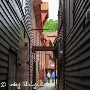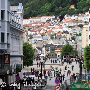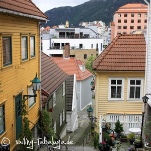 Und das kann man hier. Die Gegend ist einfach nur wunderschön. Die Berge am Rande werden immer höher und imposanter. Bergen stellt sich als eine richtige Stadt (für uns Deutsche 😉) dar, mit viel Industrie und Handel, viel Wohnraum, aber natürlich auch Tourismus. In Bergen gab es früher ein Hansekontor, was eine enge Verbindung zu Bremen, Hamburg, Lübeck und auch Lüneburg ausmachte. Das Lüneburger Salz wurde hier angeblich gegen Stockfisch getauscht. Lübeck ist heute Partnerstadt Bergens.