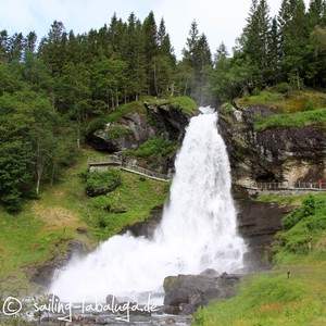 Richtung Hardangervidda geht unsere Fahrt weiter. Dass wir die Gegend nicht in einem Tag erkunden können, ist uns klar, aber einen Eindruck kann man schon bekommen. Und der ist überwältigend! Schon kurz hinter der Lodge erwartet uns der erste Wasserfall.