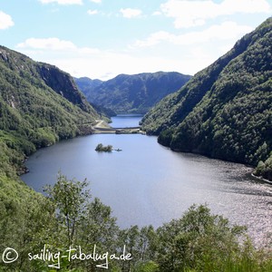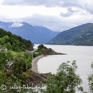 Die Straße windet sich am Hardangerfjord entlang, teils so schmal, dass einem das Herz stehen bleibt, wenn ein Truck entgegenkommt. Aber überall sind Ausweichstellen, kein Problem. Viele deutsche Wohnmobilisten sind unterwegs, aber auch Franzosen und die lieben Holländer mit ihren Wohnwagen. Die Stellplätze sehen überall super aus, hier lohnt sich sicher auch diese Reiseart.