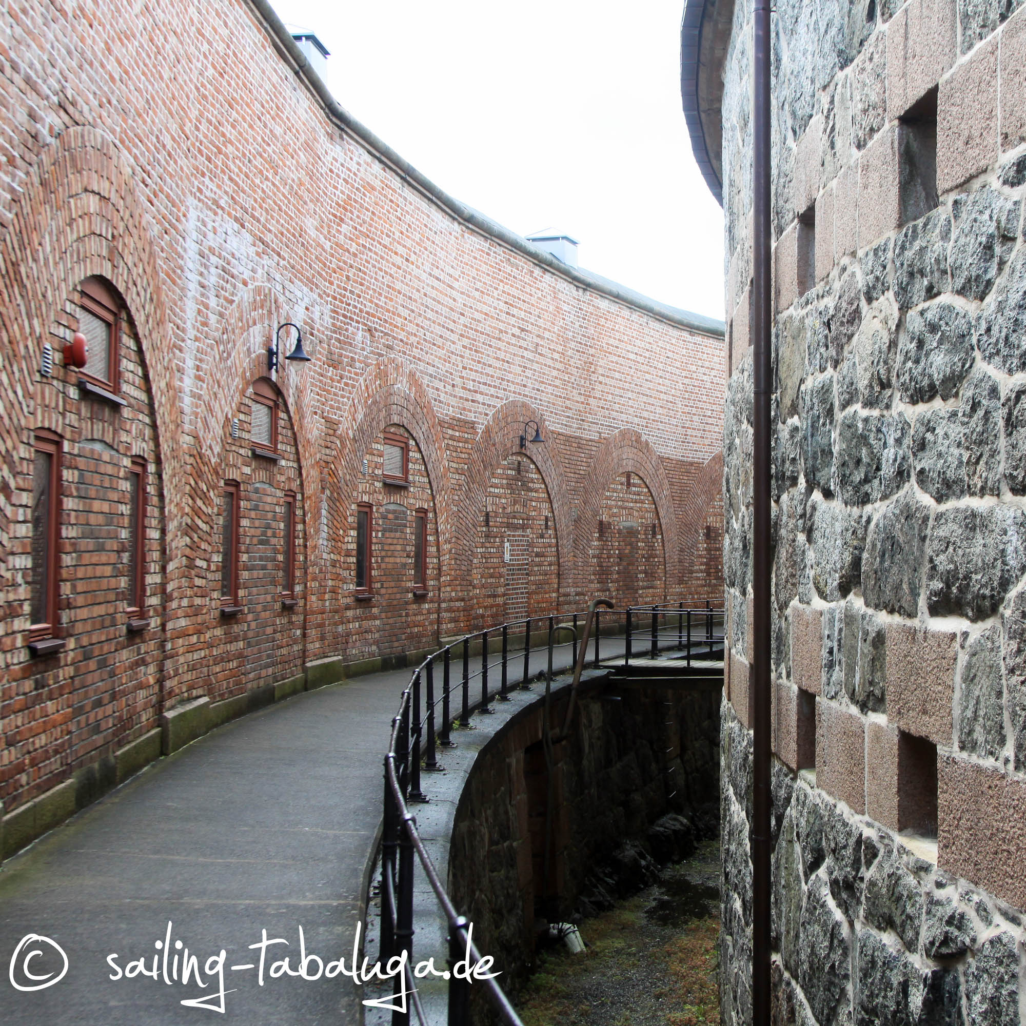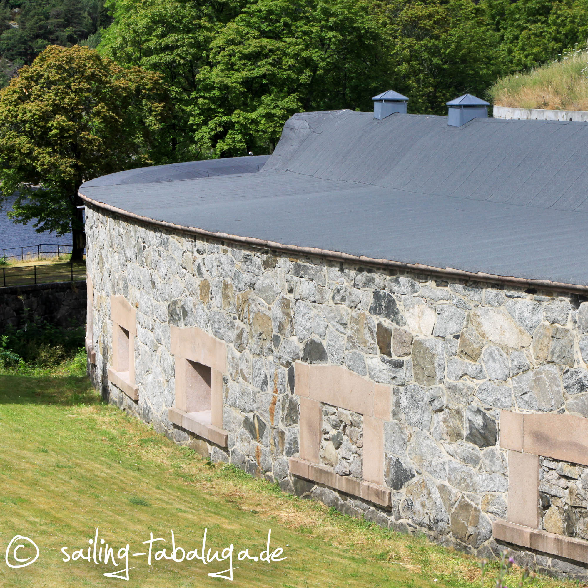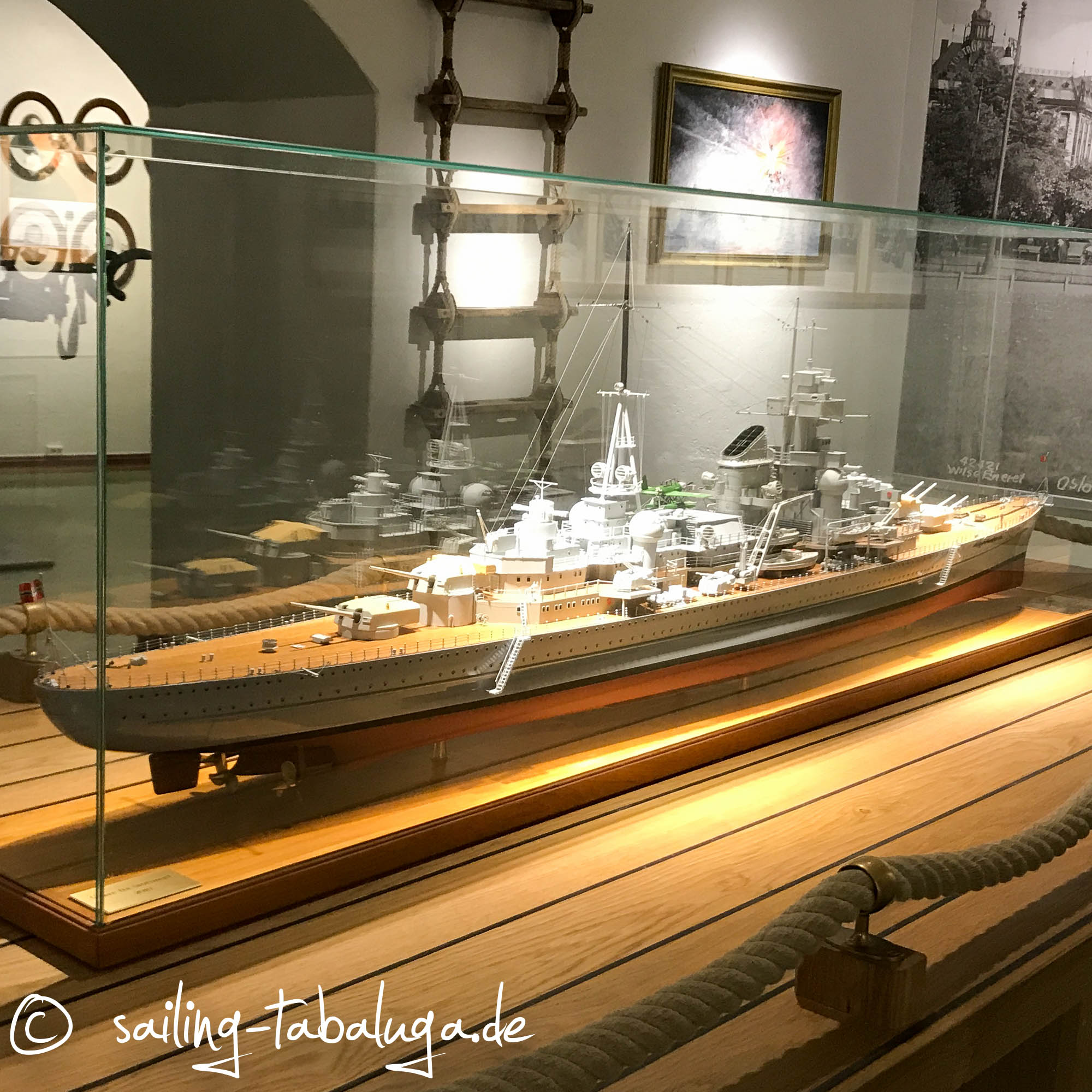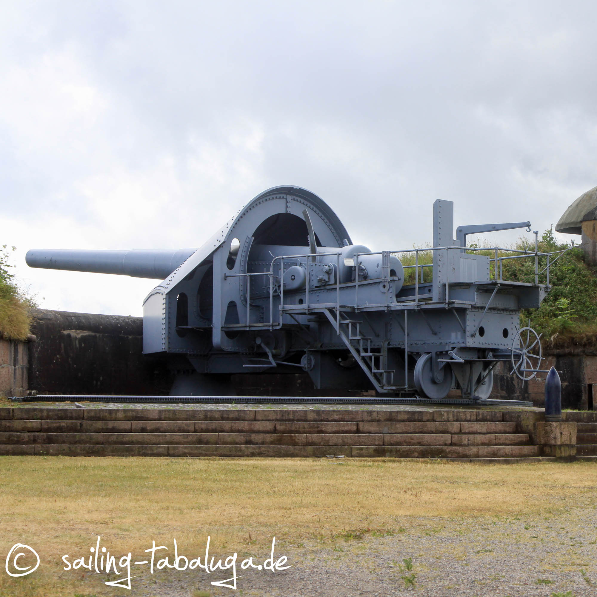 Nach dem Frühstück wollen wir aber noch etwas für unsere Allgemeinbildung tun und gehen in das Museum auf der Insel. Es ist schon unglaublich, was hier für eine Anlage zu Verteidigungszwecken erbaut worden ist. Unterirdische Torpedobatterien, überirdische Kanonen, was weiß ich noch alles. Ein Film über die Blücher, das versenkte Kriegsschiff zieht uns in den Bann. Man darf die Geschichte niemals vergessen, aber für mich ist es nach einer Weile auch gut mit den Kriegserinnerungen, mich zieht es weiter.