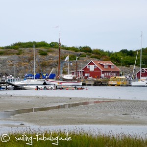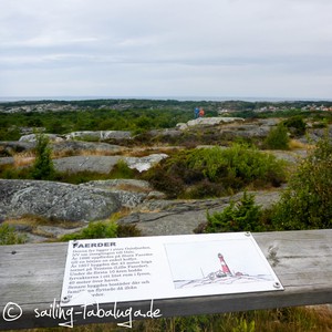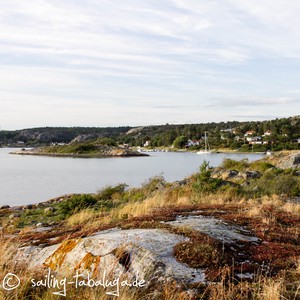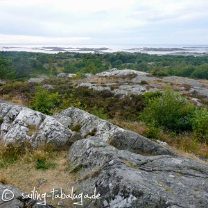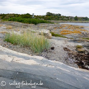 Wir segeln weiter zu den “Wetterinseln”, Värderöarna. Karge Felsen draußen im Meer, die westlichste Ecke von Schweden. Es gibt einen winzigen Hafen, der natürlich schon voll ist. Der Wind kommt ungünstig aus Ost, auch hier ist ankern nicht erlaubt, wir versuchen es vorwärts an einem Stein. Wir bekommen Hilfe durch weitere deutsche Segler, die unsere Leinen “in den Fels nageln”. Erst sieht es gut aus, aber der Heckanker hält nicht. Bernd zieht ihn mit Schlauchi raus, hier zeigen sich jetzt doch die Grenzen unseres 2-PS-Zweitakters, aber er schafft es irgendwie. Ich spüre dennoch immer wieder eine leichte Vibration durchs Achterstag gehen, es ist ablaufend Wasser und wir machen wohl Plattfische, wie der Herr in Musholm sagte… Ich will weg, ich hab genug von Grundberührungen heute!