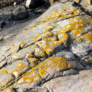 Die kleine Insel mit dem großen Namen “Store Trollholmen” begeistert uns mit einer Farbenvielfalt in Gestein und Natur. Es ist karg, aber wenn man ganz genau hinschaut, sieht man die kleinen Wunder. Das sieht doch aus, wie mit gelber Farbe auf Stein gemalt, nicht wahr?