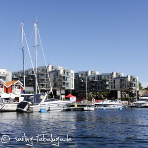 Die Sonne scheint, wir begeben uns mit Schlauchi auf den Weg nach Strömstad. Das finden wir mittlerweile einfacher als mit Tabaluga nach Liegeplätzen zu suchen. Schlauchi findet halt einen Platz in der kleinsten Ecke!