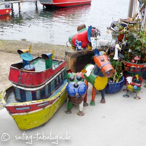 Von Strömstad haben wir viel gehört, vor allem, dass dort fast nur Norweger ihre Boote haben. So erscheint es uns auch, schwedische Flaggen wehen nicht viele. Es ist voll, die Fähren nach Kosterhavet fahren hier los, ein kleiner Rundgang reicht uns.