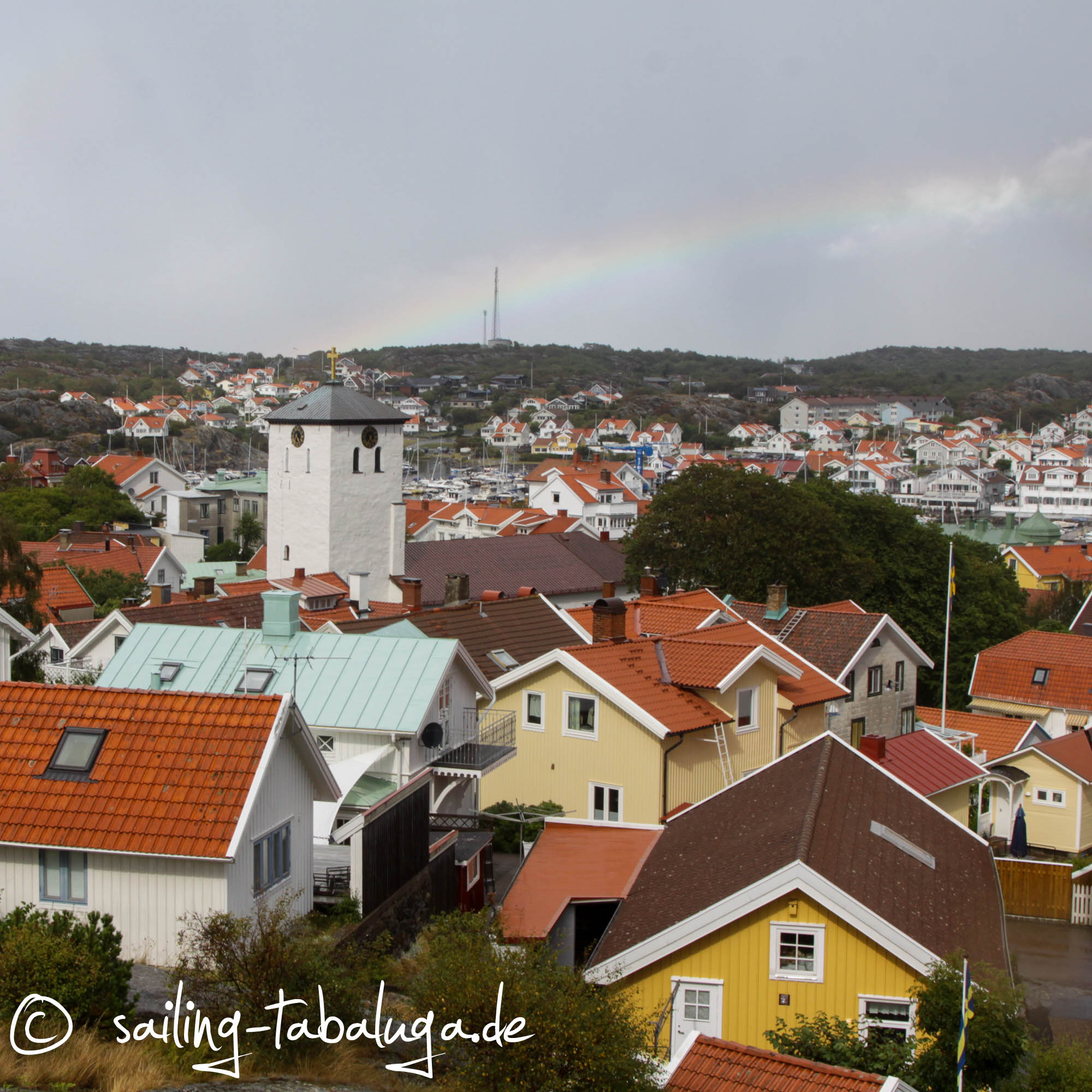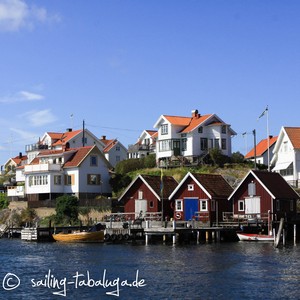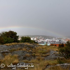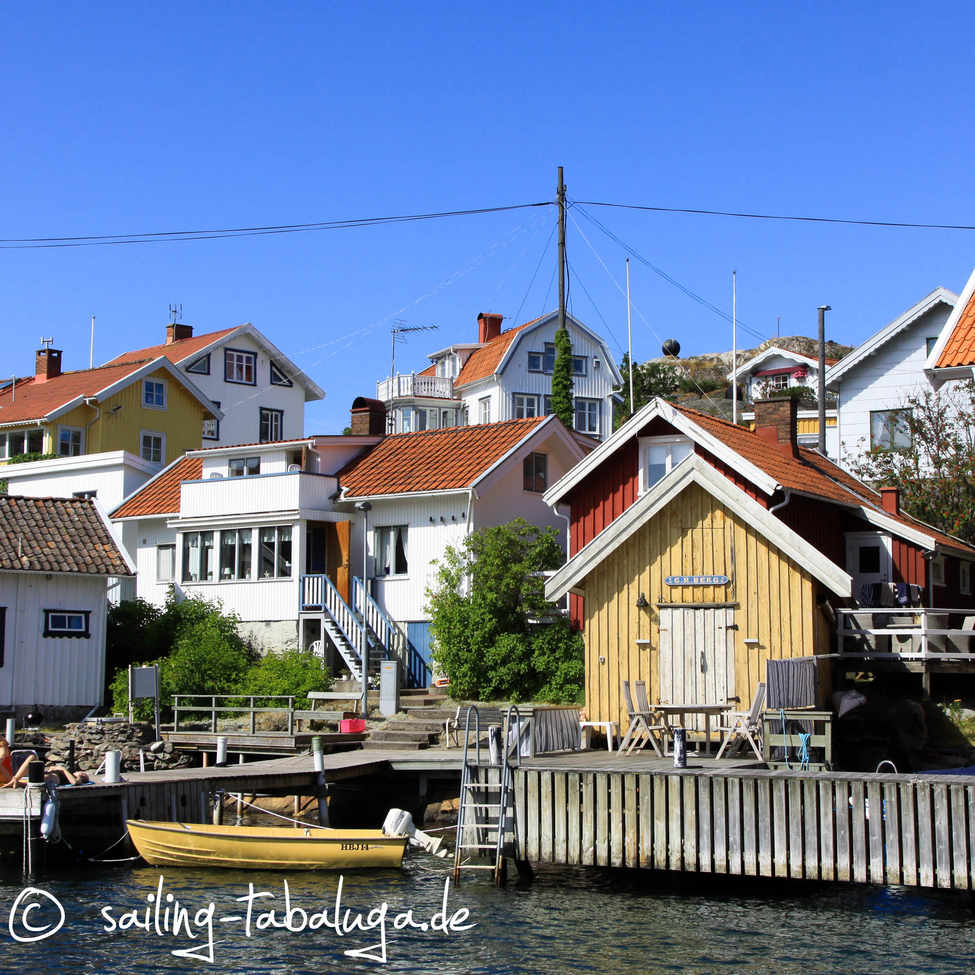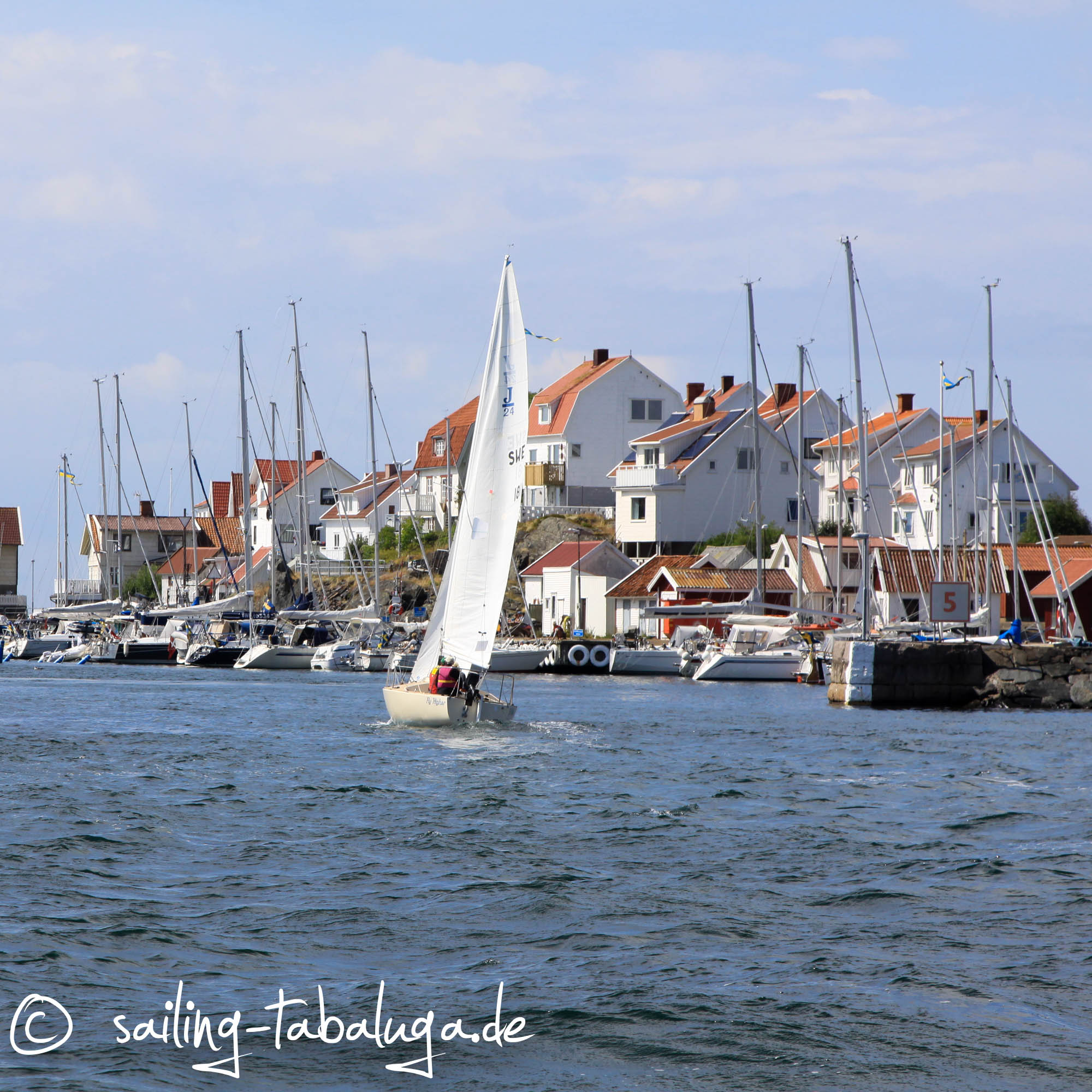 Wenn man am Morgen aufwacht und da ist fast niemand um einen herum. Man sieht Sonne, Felsen, Wasser, liegt geschützt in einer kleinen Bucht - das Gefühl kann ich nicht beschreiben. Freiheit? Das, was das Segeln ausmacht? Sein kleines Zuhause immer dabei haben und trotzdem in der Natur zu sein, sie zu erleben und zu genießen? Und war das vielleicht der letzte Naturhafen auf dieser Reise? So richtig bewusst werden mir diese Gedanken auch erst, als wir in Marstrand im Hafen anlegen. Da ist viel los, wie überall in den Häfen in den Schären, diesmal ein merklich krasser Gegensatz zu dem gestrigen Abend.
