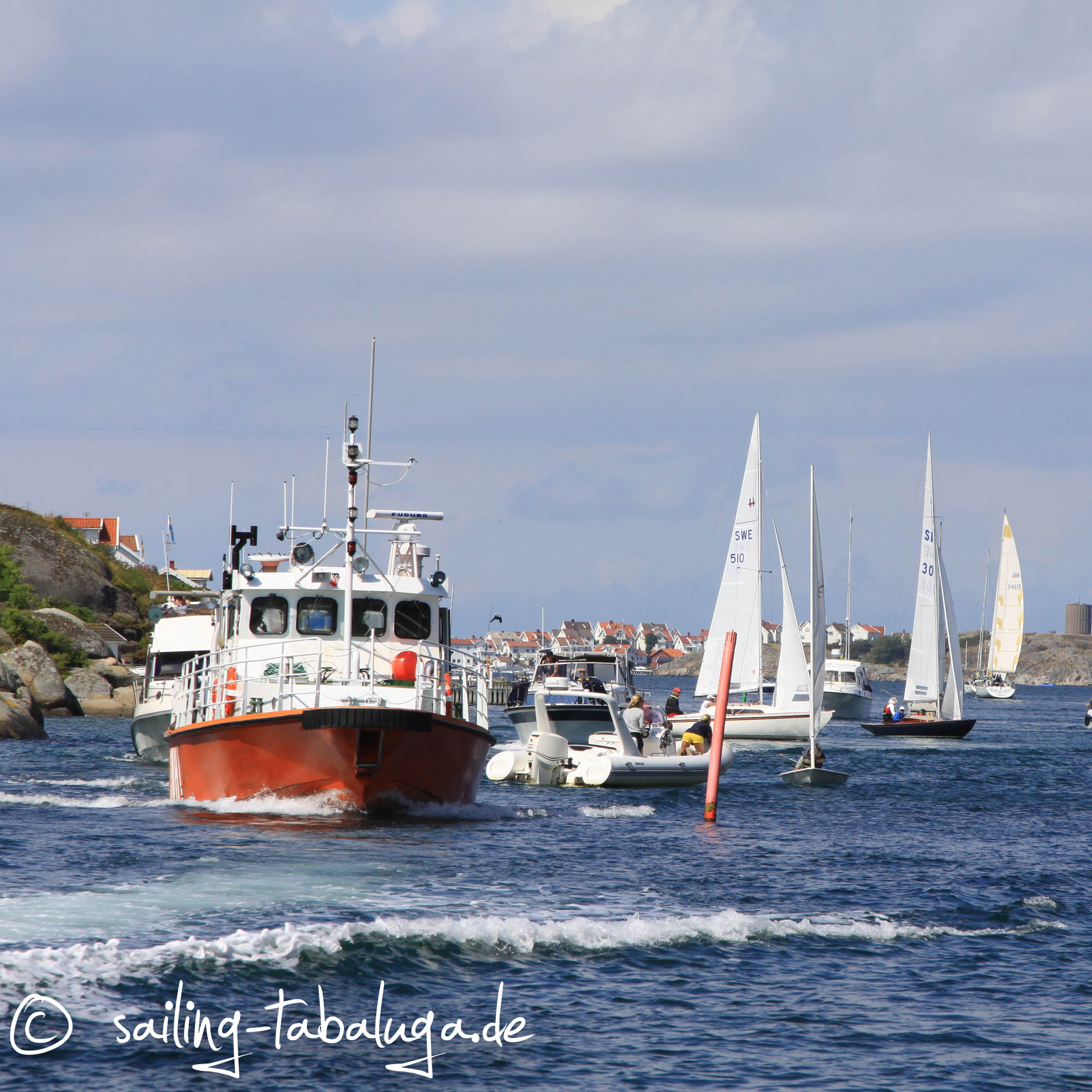 Der Wind soll in den nächsten Tagen immer stärker werden, so dass wir erst glauben, wir hängen fest. In der Nacht bläst es ordentlich, ich sehe uns schon noch eine Woche in Marstrand verbringen. Am Morgen bleibt er aber recht konstant bei 15kn, so dass wir im Schutz der Schären den Weg nach Göteborg antreten. Viele Bilder mache ich heute nicht, es ist grau in grau, ich hoffe, die Rückfahrt wird schöner und ich kann noch ein paar Bilder von der langen Zufahrt in den Gästehafen nachliefern.