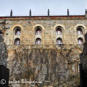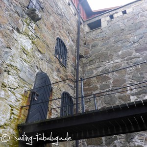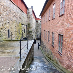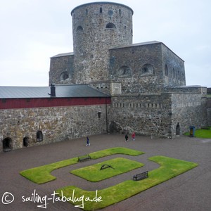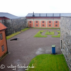 Wir versuchen es am nächsten Morgen erneut mit einem Besuch im Inneren der Festung. Sie wirkt von innen genauso imposant wie schon von außen. Die Schweden sind hier außerordentlich stolz auf einen Dieb, genannt Lasse-Maja, der hier gefangen gehalten wurde und sich dadurch ausgezeichnet hat, für die anderen Gefangenen zu kochen. Der Pub heißt so, die Fähre heißt so - es scheint, hier lebte der schwedische Robin Hood.
