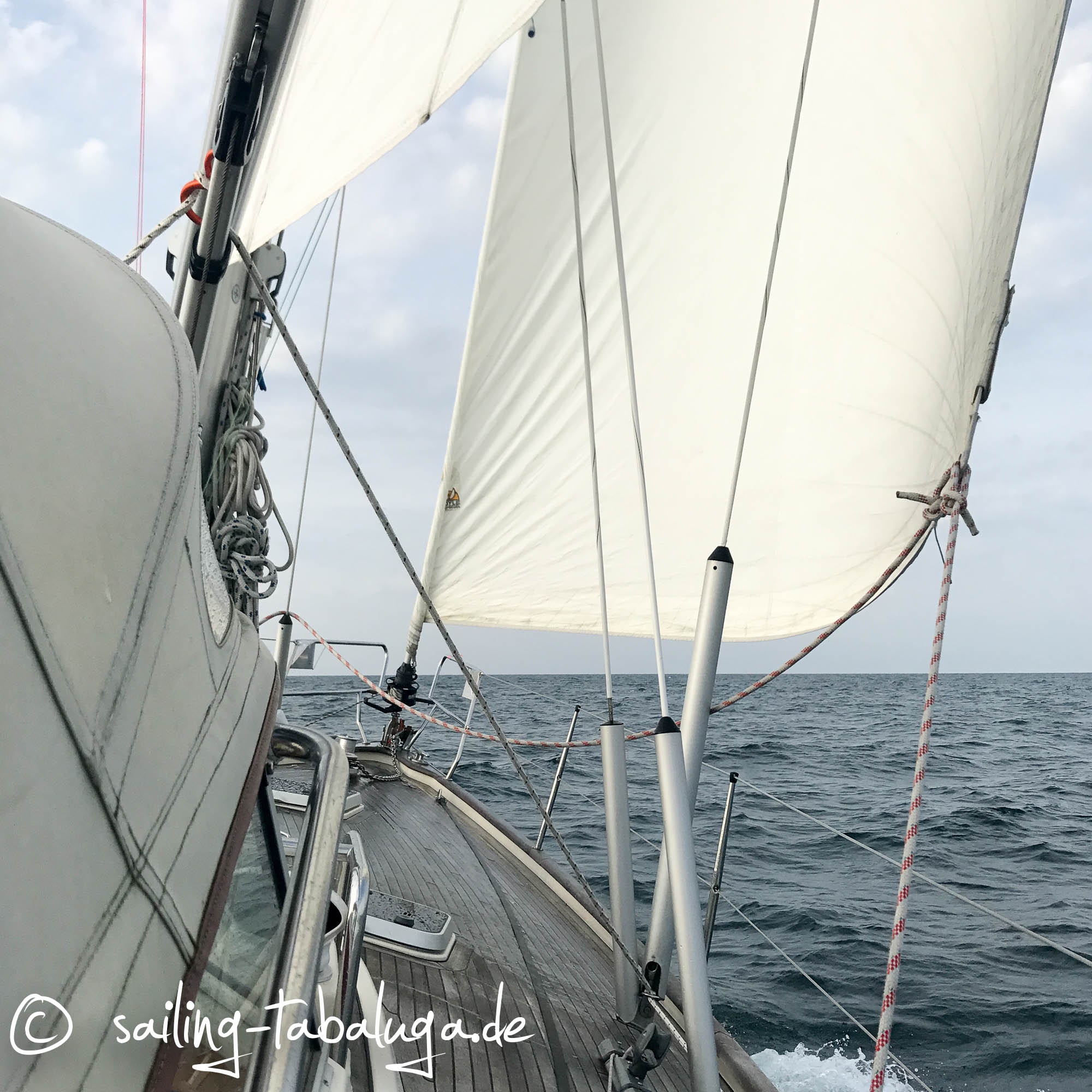 Von Varberg starten wir wieder früh, der Wind hat auf Südost gedreht, so dass wir entscheiden, quer durchs Kattegat direkt nach Dänemark zu segeln. Leider ist die nächste Starkwindphase für Mittwoch angekündigt, so dass wir nicht auf Anholt Stopp machen, sondern direkt ans Festland wollen. Schade ist das schon, Anholt liegt mitten im Kattegat und wenn man es sich auf der Karte anschaut, hat es die Form eines kleinen Vogels und verspricht Dünen und Sandstrand.
