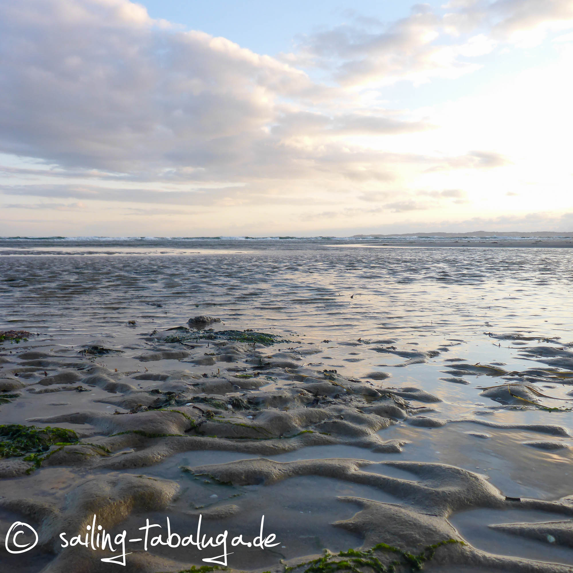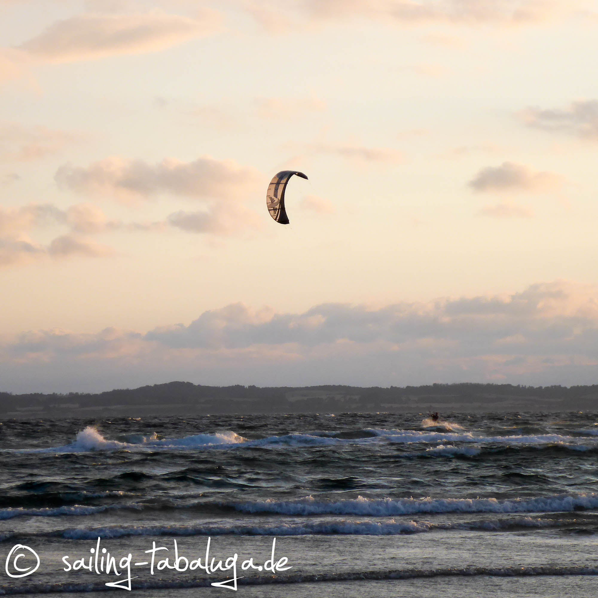 Abends gelingt es uns dann doch, den Reifen zu flicken, wir drehen noch eine Testrunde zum Strand und fühlen uns fast wie an der Nordsee! Der Wind pustet uns ordentlich durch, Kiter sind unterwegs, die Brandung erzeugt Schaumwölkchen.