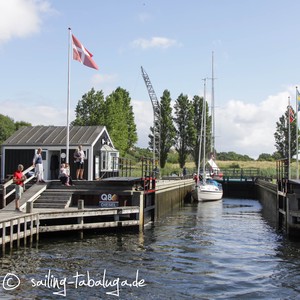Auf der Karte sehen wir einen Hafen, der in einer ehemaligen Kiesgrube, also einem Binnensee angelegt worden ist. Man kommt durch eine Schleuse da hinein und liegt perfekt geschützt. Wir rufen sicherheitshalber an, ob wir noch reinkommen, klar, kein Problem! Ein wenig seltsam ist es schon, so direkt auf Land zuzuhalten und keinen Hafen zu sehen. Aber das Schleusen klappt und so knapp vor der Dunkelheit legen wir an. 83 Seemeilen stehen auf dem Log! Anlegerbier, Käsebrot, Dusche, Bett.