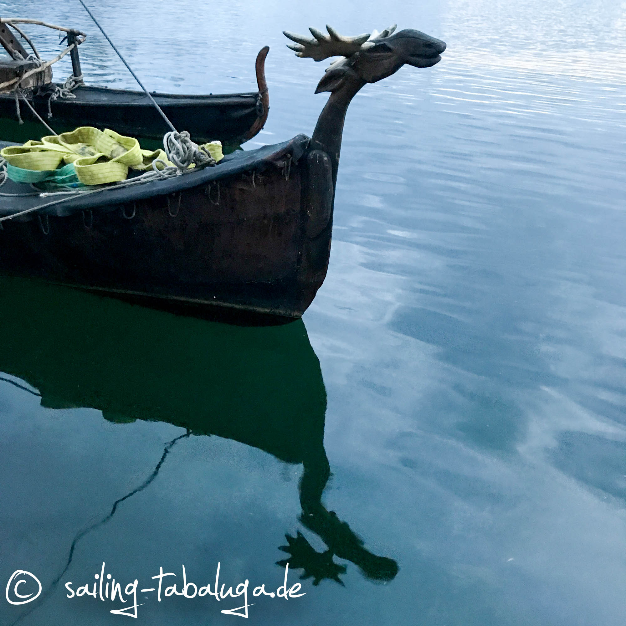 Zurück auf der Else wollen wir es uns bei Wein, Whiskey und Saft gerade noch gemütlich machen, als wir eine vierköpfige Familie beobachten, die sich anscheinend bei der Anfahrt zum Steg mit ihrem Segelboot festgefahren haben. Ich rufe hinüber, ob sie Hilfe brauchen und höre ein “Ja!” zurück schallen. Da das Wetter ruhig ist, machen wir in aller Ruhe die Schlauchboote fertig und wollen zur Hilfe eilen, als ein weiterer Liegeplatzinhaber schneller mit seinem Beiboot zur Stelle ist. Er hat einen stärkeren Außenborder, so dass wir ihm dann das Freischleppen überlassen. Das funktioniert auch recht zügig und er geleitet sie zu einem freien Platz. Mit etwas Mühen legen sie an, sie sind zwar sehr bemüht und auch nicht panisch, aber scheinen wenig Routine zu haben. Oder sie sind einfach müde… Die Kinder haben aber anscheinend Spaß und passiert ist auch nichts.