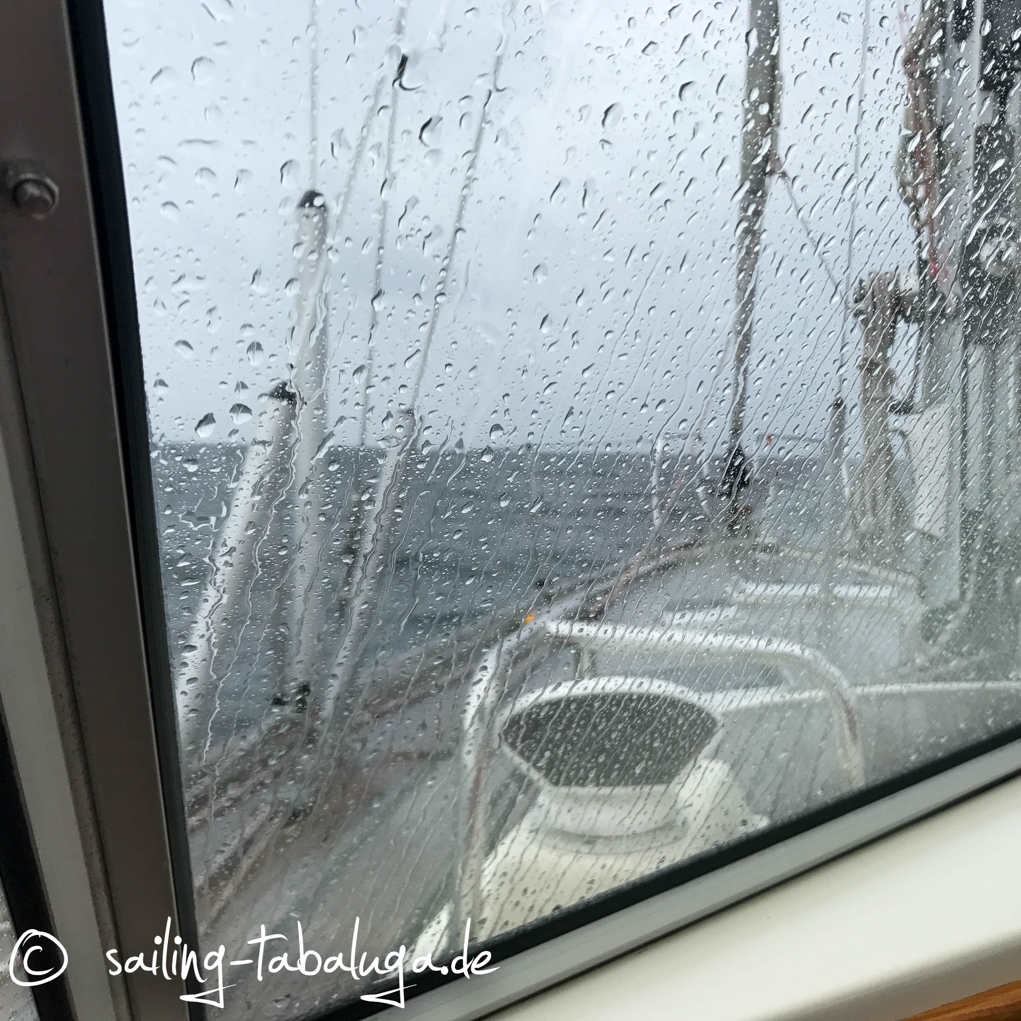 Dieses Mal haben wir beim Liegeplatzlotto leider eine Niete gezogen… Beim Einlaufen war ja kein Wind, so dass wir gar nicht darauf geachtet haben, in welcher Richtung wir liegen. Abends kommt der Wind zurück und genau aus Nord direkt aufs Heck und so, dass ein Schwell im Hafen steht, der das Einschlafen in der Heckkoje unmöglich macht. Ich verkrieche mich in den Salon, da ist es etwas ruhiger. Dennoch finde ich nicht viel Schlaf in der Nacht.