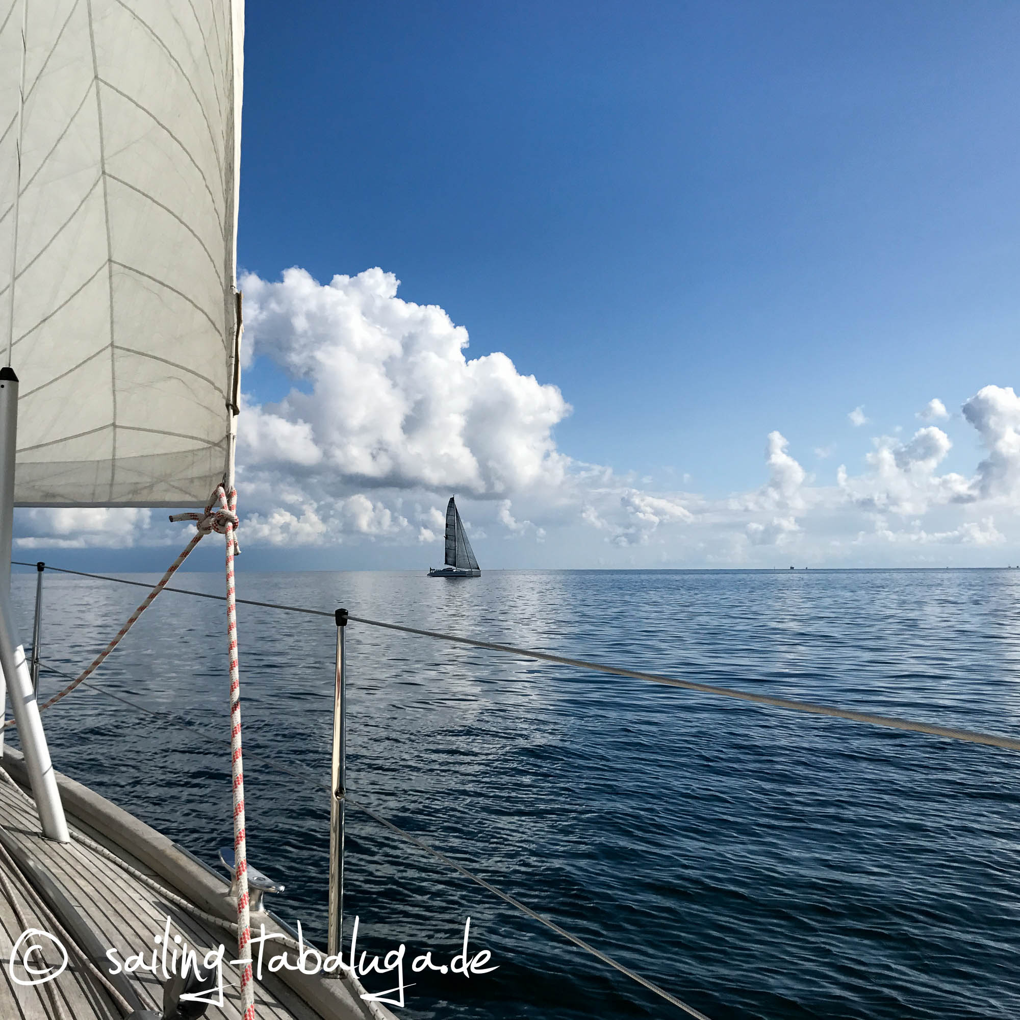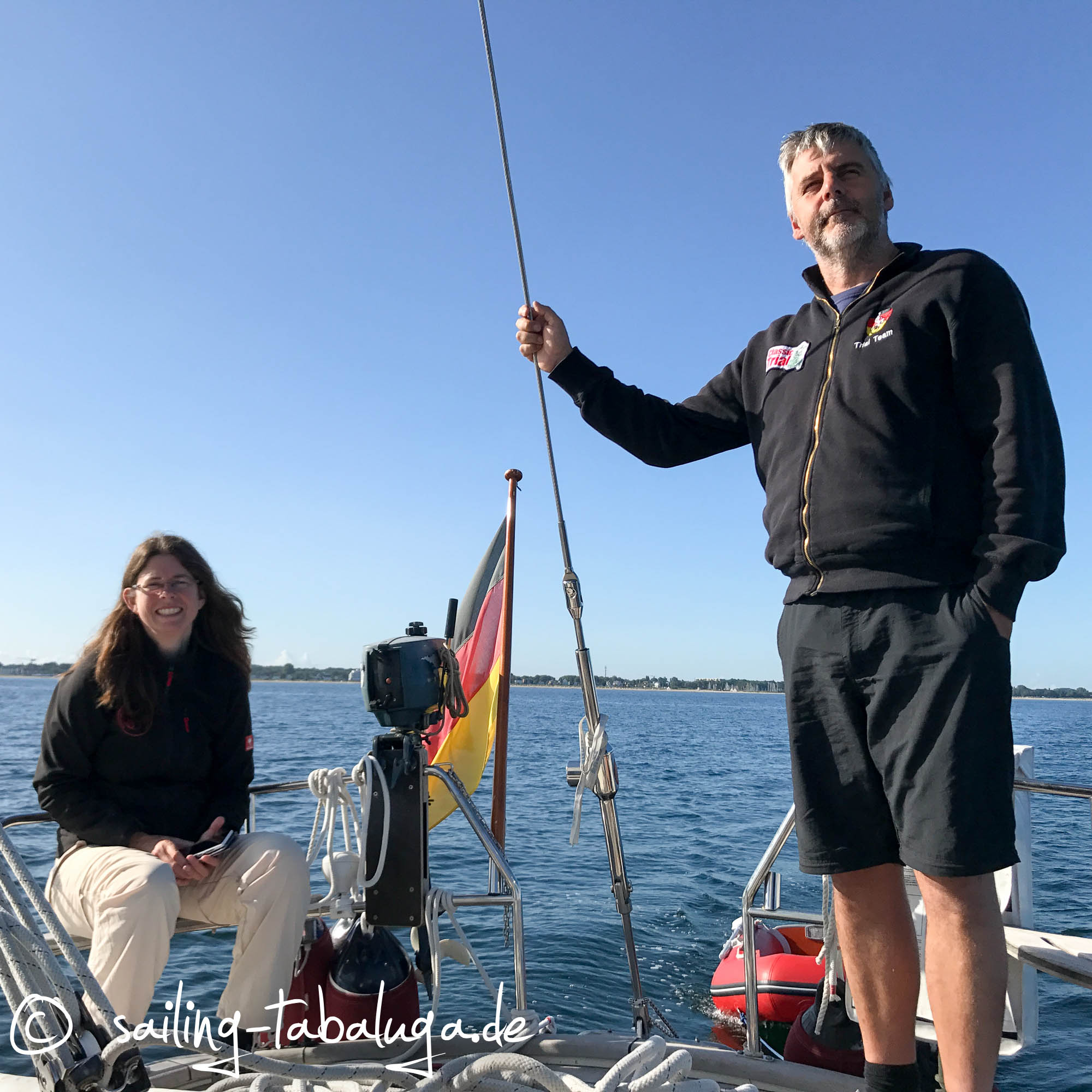 Die liebe Chili und ihr Mann Klaus aus meiner alten Heimat sind mit ihrem Wohnmobil “Campino” unterwegs und statten uns einen Besuch ab. In Niendorf kommen sie an Bord, aber leider können wir ihnen nicht viel “Tabaluga-Action” bieten, der Wind ist futsch.