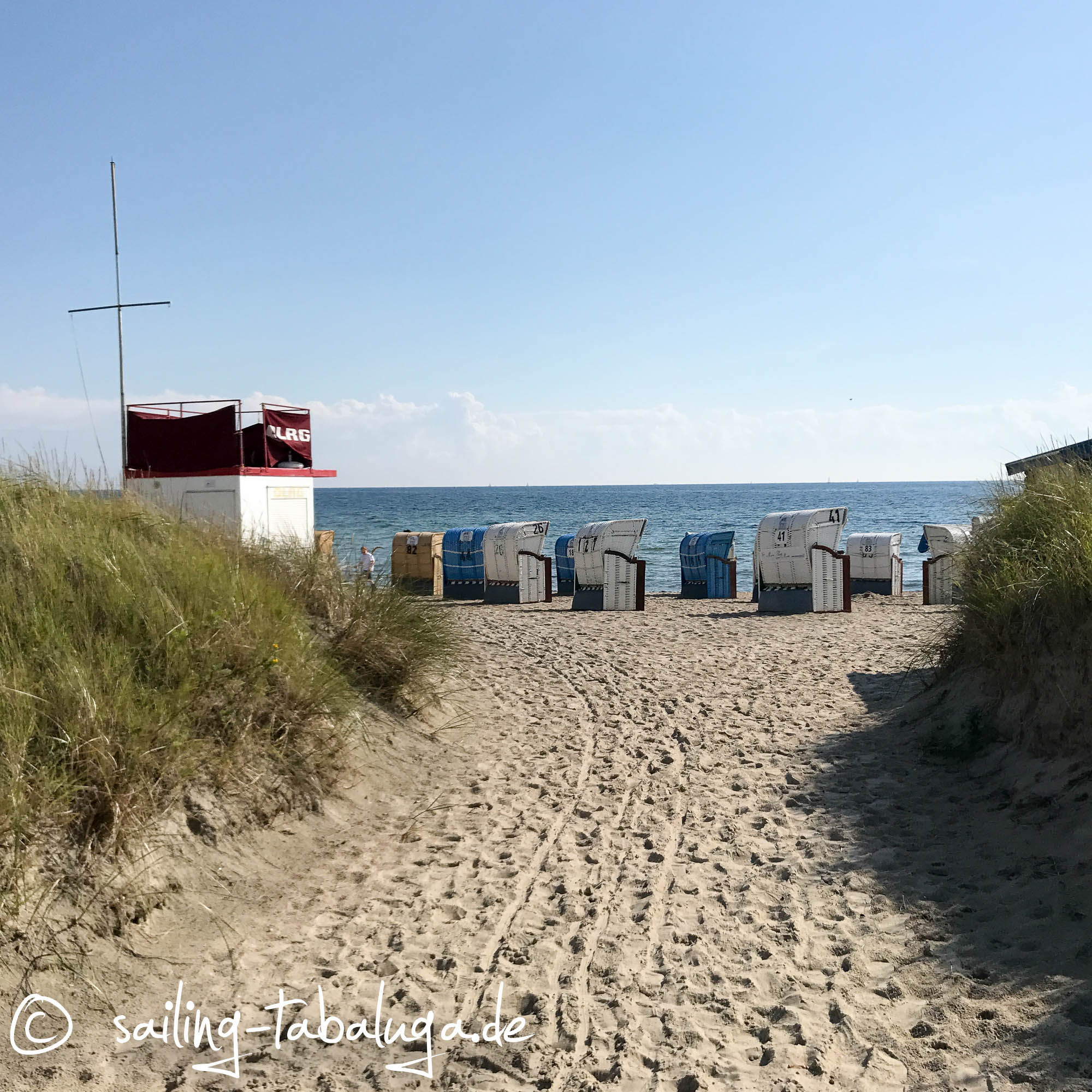 Wir haben Anfang des Monats ein wunderbares Wochenende zusammen mit Freunden und Familie in der Lübecker Bucht. Bernd segelt mit seinem Sohn und seinem Neffen bis Niendorf, dort warten wir auf ihn.