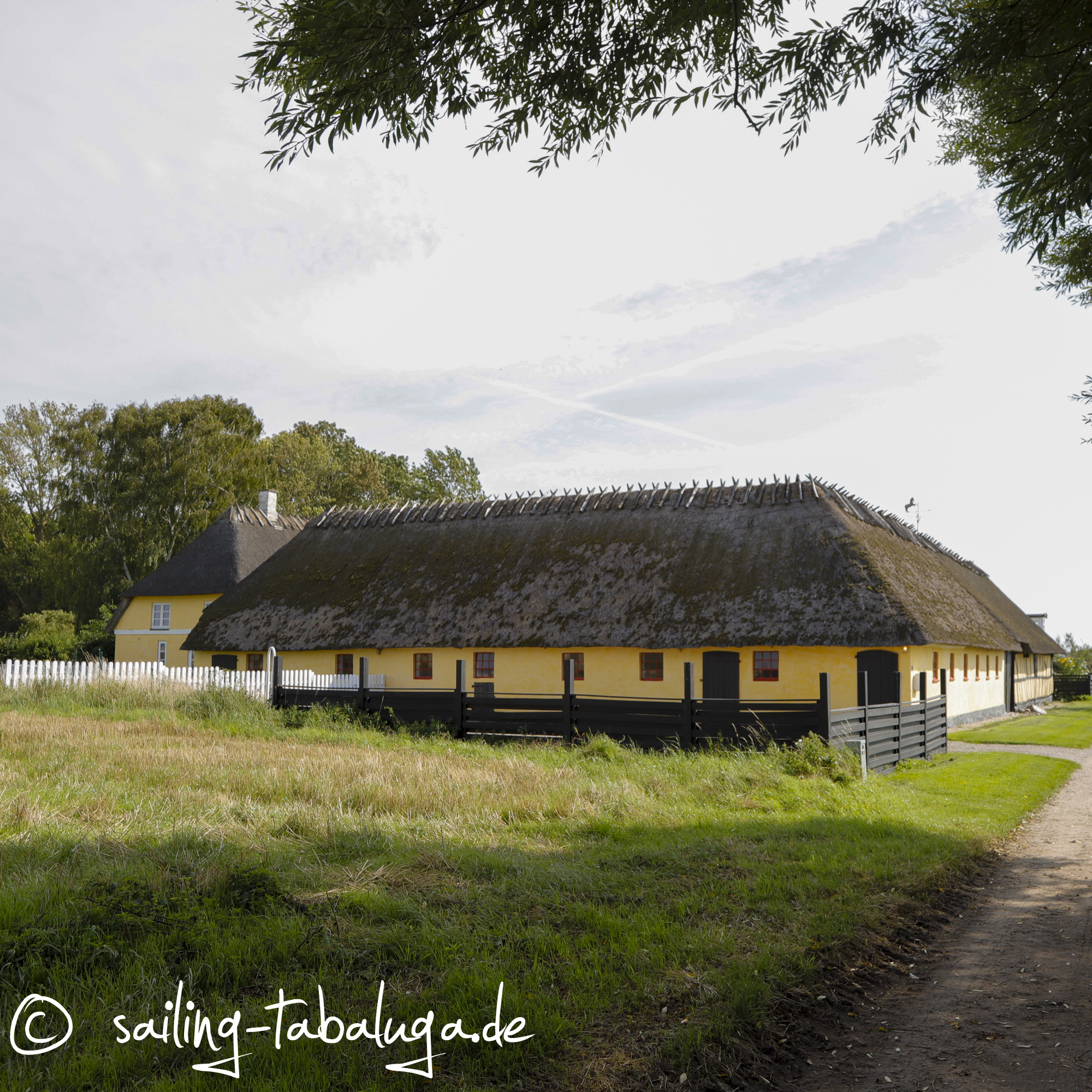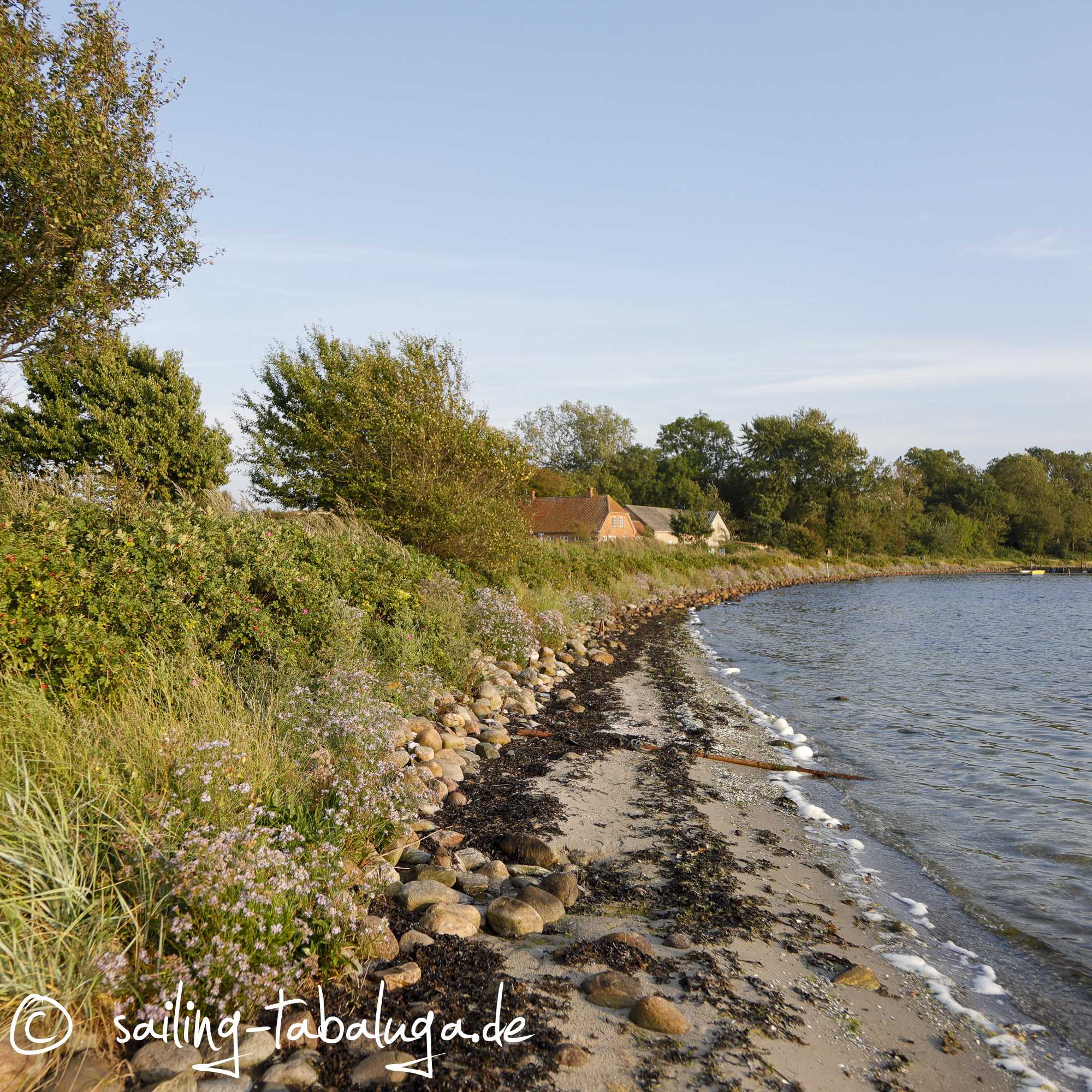 Von Middelfart geht es durch den kleinen Belt südwärts. Der Südwind hat kein Erbarmen mit uns, so nutzen wir ausnahmsweise Motorkraft, um unser Ziel zu erreichen. Ein Stück können wir noch segeln, aber als wir auf Höhe der kleinen, sich in Privatbesitz befindlichen Insel Brandsø, an einer Fischfarm vorbeikreuzen und irgendwie merken, dass wir für die gerade Linie von einer halben Seemeile sehr viel Zeit verbraucht haben, haben wir keine Lust mehr und nehmen die Segel runter.