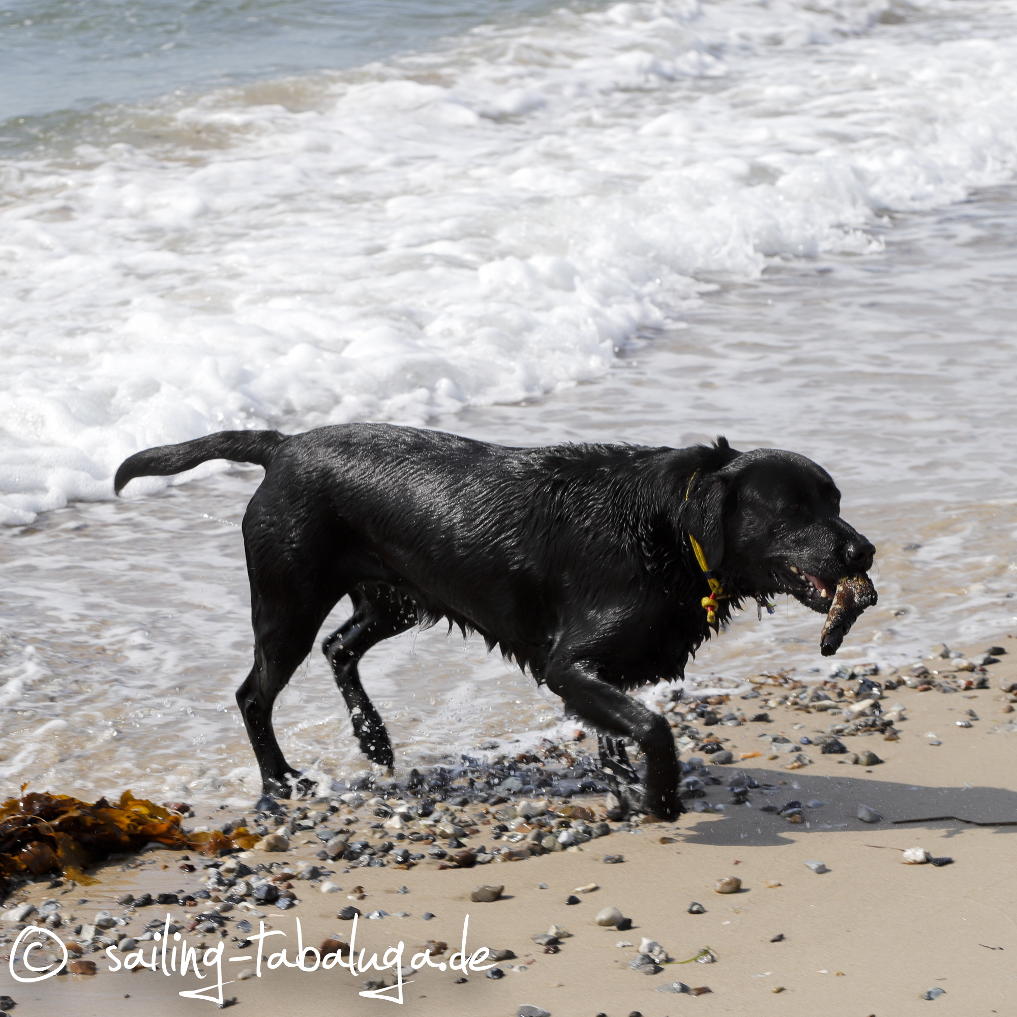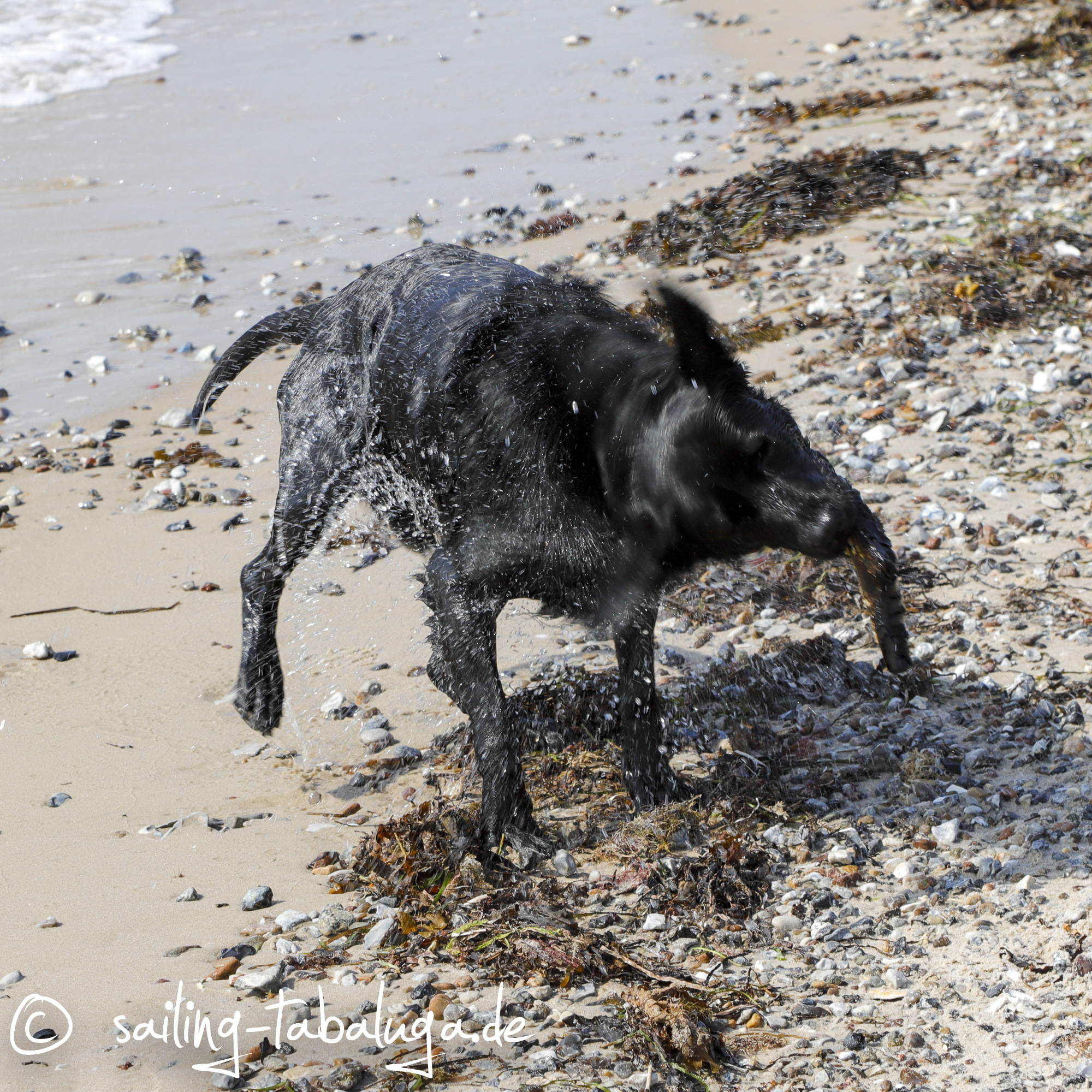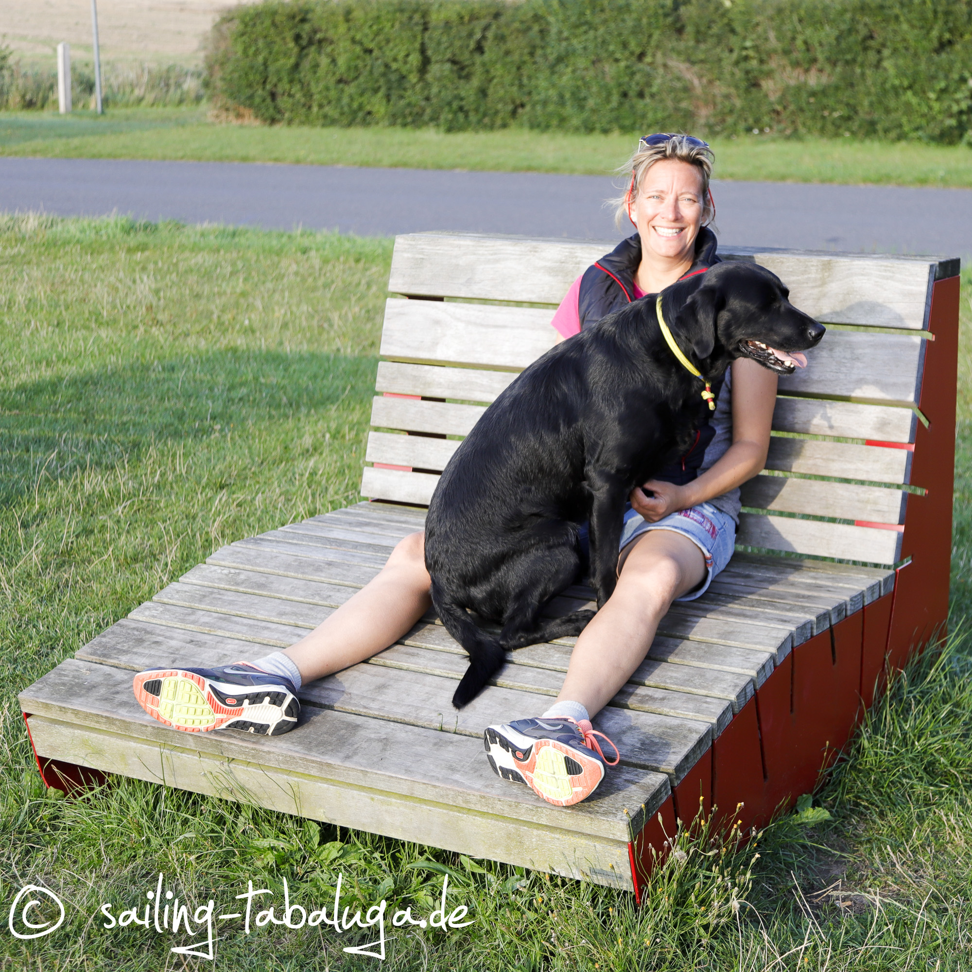 Am Morgen macht sich Bernd früh auf zum Bahnhof, schließlich brauchen wir ja unser Auto aus Hamburg! Er nimmt Zug, Bus und Fähre nach Finkenwerder und schafft es mehr oder weniger staufrei trotz Cyclassics in Hamburg zurück nach Flensburg. Ich putze in der Zwischenzeit Tabaluga, packe unsere Dreckwäsche von drei Wochen und bin nicht sooo glücklich über die vorherrschenden Sommertemperaturen. Nach drei Wochen im gemäßigten Dänemark macht mir die Hitze sofort wieder zu schaffen. Lieschen bekommt ihr Kühlmäntelchen an und rührt sich gar nicht mehr.