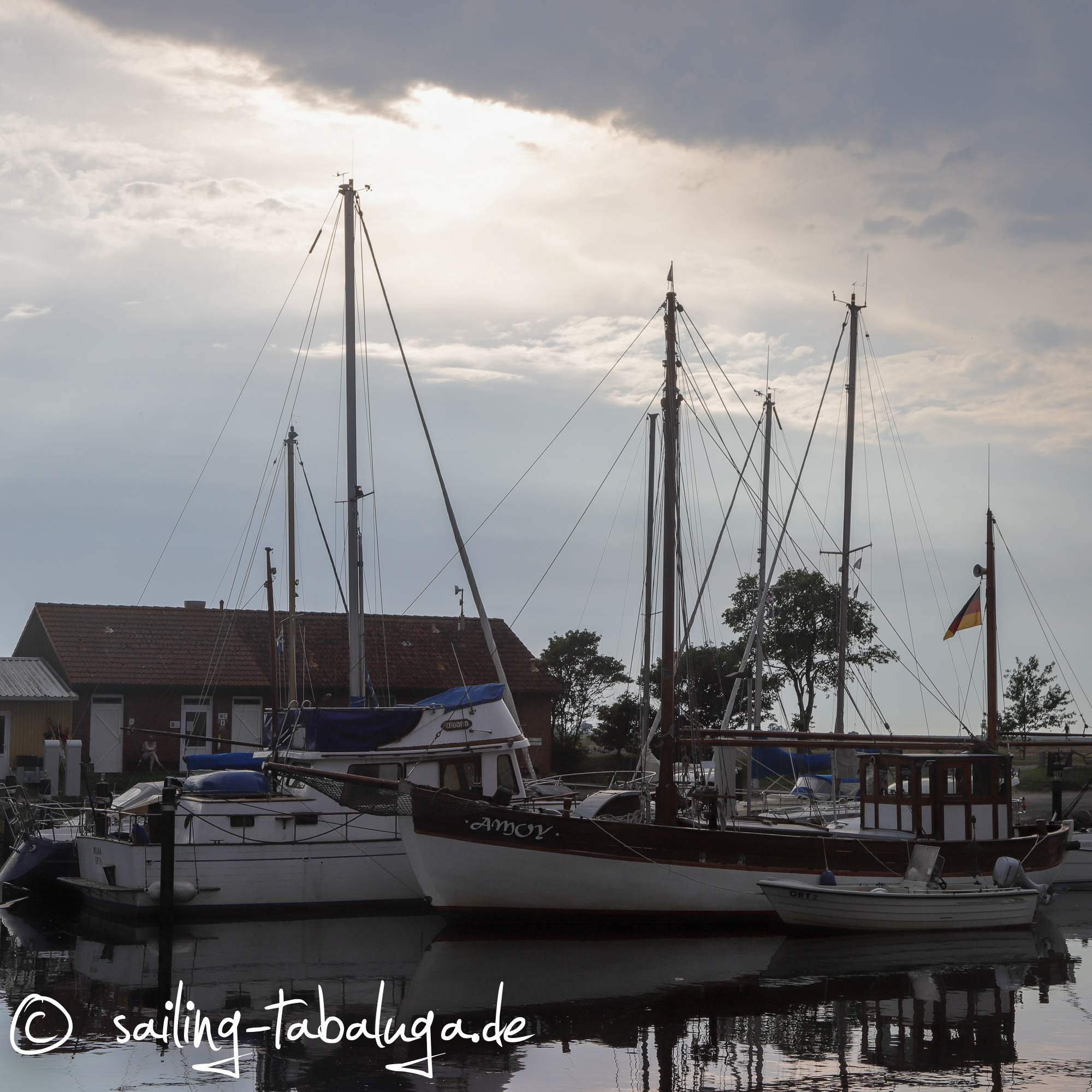 Ein Wochenende trauen wir uns nach Orth auf Fehmarn, leider macht uns Lieschen einen Strich durch die Rechnung, ihr geht’s nicht gut, sie hat Durchfall und weckt uns jede Stunde. Vermutlich hat sie zu viele Beeren im Garten genascht… Etwas übernächtigt und auch ein bisschen besorgt sitze am nächsten Morgen mit dem schläfrigen Hund auf Deck, als ein Pärchen bei uns stehen bleibt. Sie hatten in der Nacht nach ein paar Bierchen ihre Harley am Hafen stehen lassen und sich nach Hause ins Nachbardorf mit dem Taxi fahren lassen. Böse Überraschung am Morgen: die Harley war weg, gestohlen! Ich war wirklich mehrfach draußen mit Liese, aber ich habe niemanden gesehen. Vermutlich zum Glück… was hätte ich gemacht? Aber hätte ich überhaupt gemerkt, dass das Motorrad geklaut wird, selbst wenn ich jemanden gesehen hätte? Die beiden sind total bedröppelt, kein Wunder, so etwas in dem winzigen Kaff Orth. Die Polizei kann auch nicht viel tun. Ich hoffe, es war nur ein wirklich böser Scherz und das gute Stück ist wieder aufgetaucht! Der Hafen Orth ist übrigens Kulisse in der Krimireihe “Nord bei Nordwest”. Vielleicht waren wir ja Teil der Kulisse?