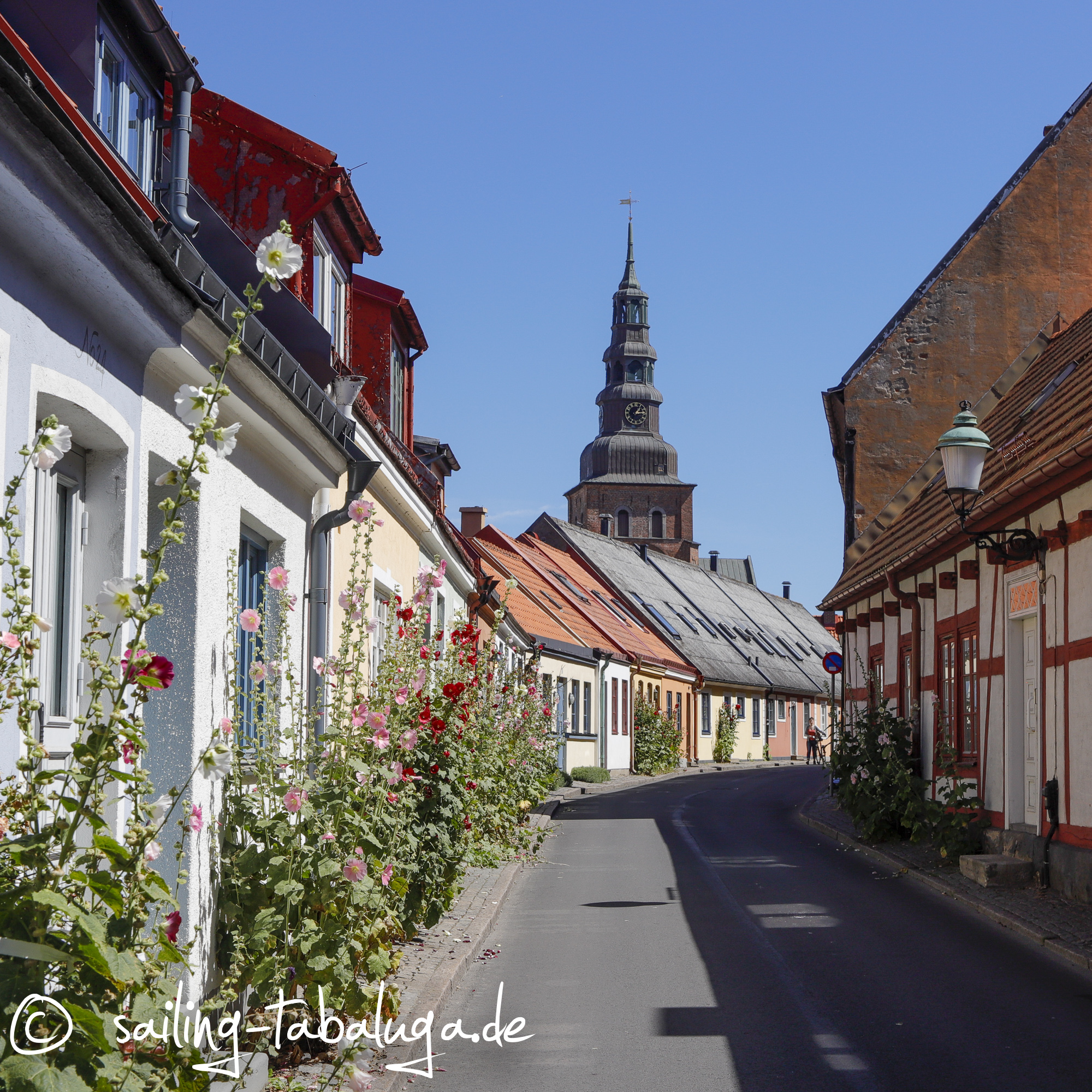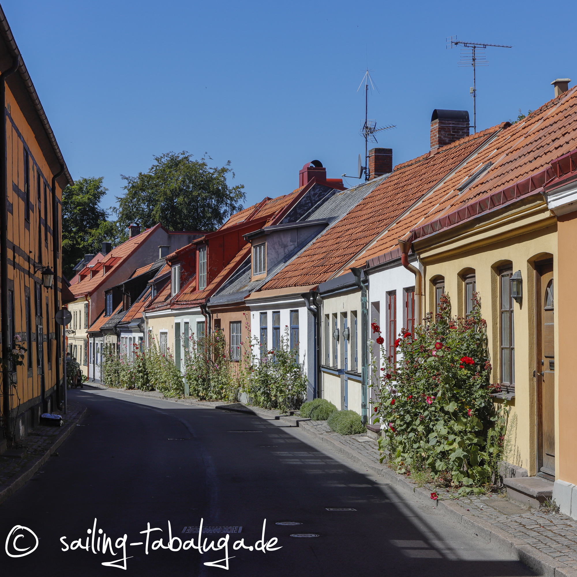 Wir legen in einem fast freien Gästehafen an einem Schwimmsteg an, essen und machen einen kurzen Abendspaziergang, der definitiv Lust auf einen Stadtbummel am Samstag macht! Sehr hübsch, dieses Ystad. Ich hatte es mir irgendwie anders vorgestellt, in den bekannten Krimis von Henning Mankell mit Kommissar Wallander wird immer eine eher düstere Atmosphäre beschrieben. Die Restaurants sind überall voll, es herrscht eine entspannte Stimmung, die Menschen sitzen am Hafen mit Picknickdecken und von Corona ist nicht viel zu merken.