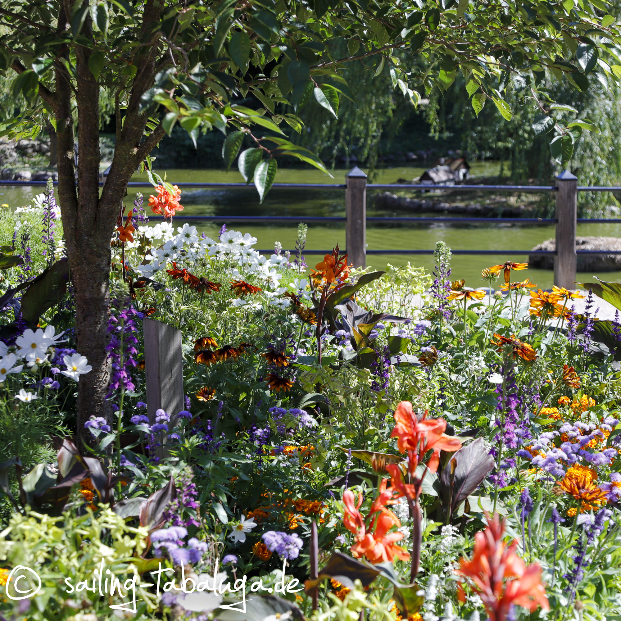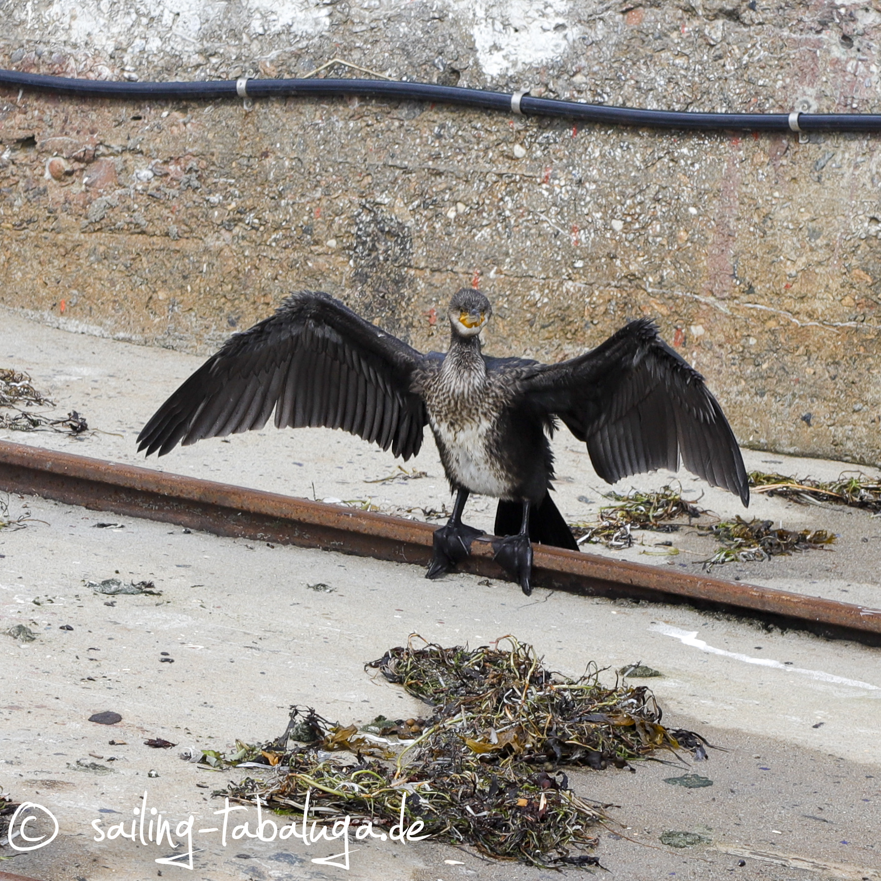 Sommer, Sonne und kein Wind… Wir frühstücken in aller Ruhe, ich blogge und bearbeite Fotos, Bernd putzt Fenster und meditiert, der Hafen ist leer und ruhig. Aber dann entern fünf Frauen und ein Mann lautstark„Mr. Ed“, ein Motorboot am Steg uns gegenüber und die Party startet ab morgens um elf 🙂. Sektkorken knallen und Musik dröhnt durch den Hafen. Mr. Ed legt bald mit lautem Getöse ab und überlässt uns wieder der Sommerruhe.