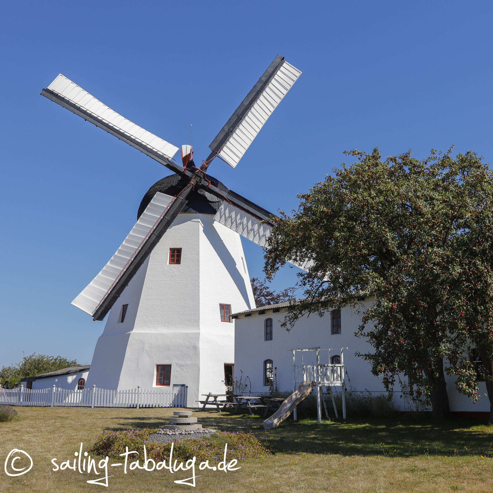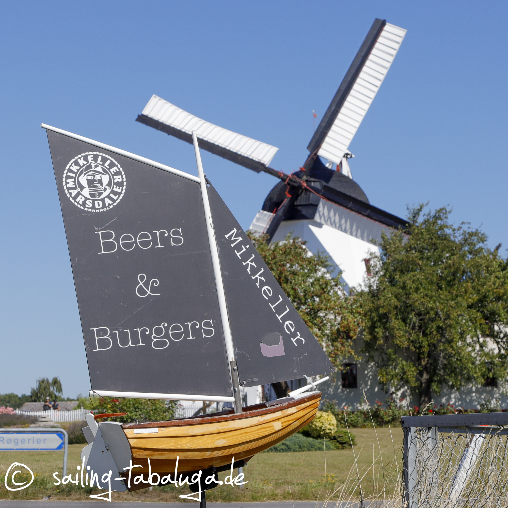 Im Hafen herrscht dennoch Radau. Möwen schnattern und kreischen, graue Möwen. Eine watschelt immer vor Tabaluga herum, es sieht aus, als ob sie nickt oder einen Knicks macht. Dann flattert sie ins Wasser, krakeelt weiter. Hüpft an Land, wieder Knickse, fliegt zu einer weißen Möwe und nervt die. Wir fragen uns, was das zu bedeuten hat? Sind die ein bisschen gaga oder haben Fisch gegessen, der schon abgelaufen war? Ich frage Tante Google… und siehe da, es stellt sich heraus, dass es die Jungmöwen sind, die von ihren Eltern rausgeworfen wurden. Sie sind flugfähig, aber noch nicht so ganz selbständig. Ein paar Wochen lang versuchen sie noch, ihre Eltern zum Futter abgeben zu überreden und bleiben in der Nähe. Aber die bleiben zumeist hart und lassen ihren Nachwuchs auf die harte Tour lernen, selber Fisch zu fangen. Genau das führt zu Gejammer, Geschrei und Verrenkungen, was wir gerade in Nexö wunderbar beobachten können! Nervkekse könnte man sie auch nennen 😉.