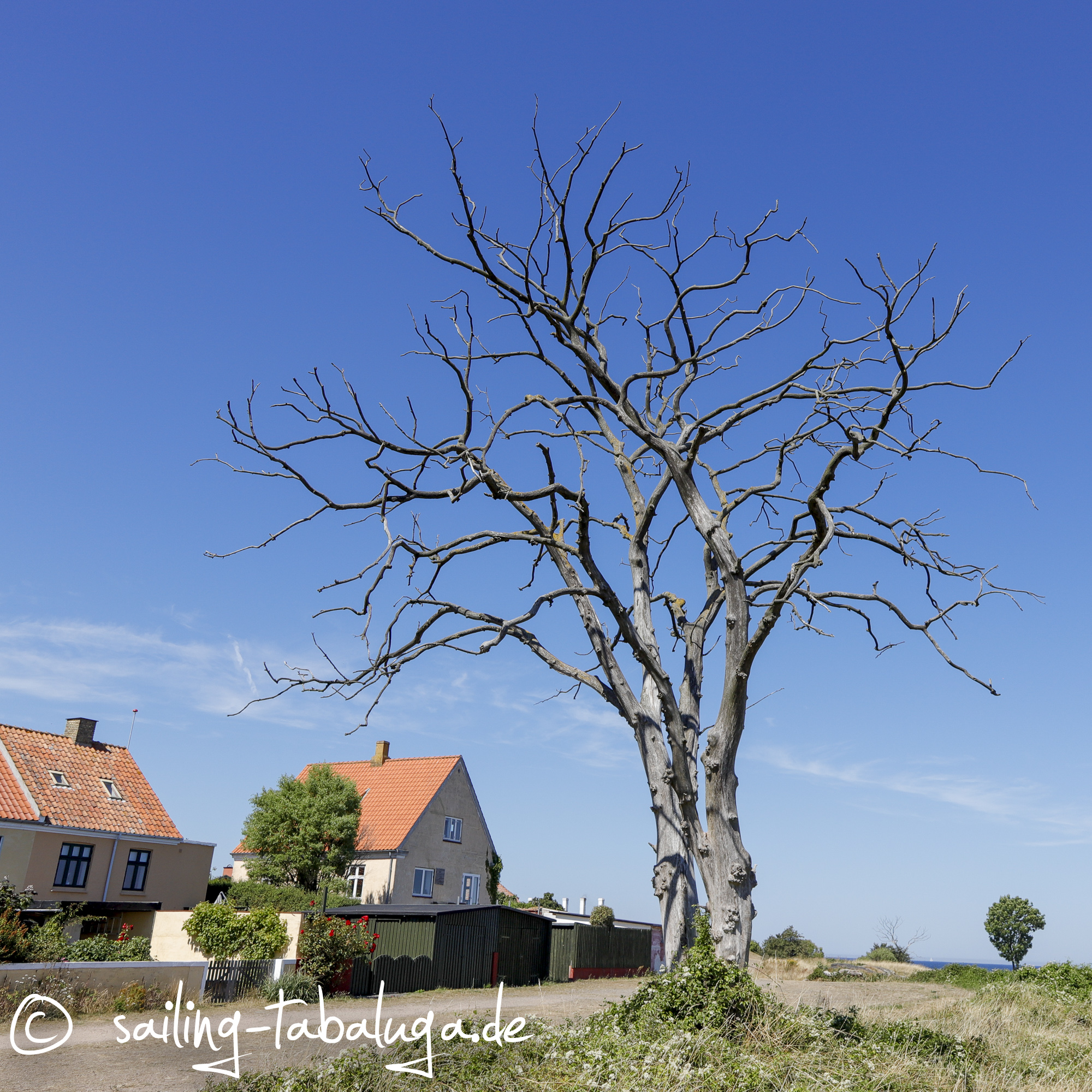 Das Wetter bleibt uns hold, so einen Sommer hatten wir noch nicht, wenn wir mit Tabaluga unterwegs waren. Wir segeln auf Vorwindkurs mit dem Blister, nichts kann unsere Laune trüben. Wir versuchen vor Dueodde zu ankern, um noch einmal von hier ins Wasser zu hüpfen, aber wir unterschätzen die Strömungen und die Wellen, die hier an der Südspitze der Insel vorherrschen. Daher segeln wir gleich weiter, Zielhafen ist die Hauptstadt von Bornholm, Rønne. Nach dem Anlegen hüpfen wir direkt ins Wasser, so heiß ist es. In dem Zuge können wir gleich das Schiff mal von außen reinigen, gerade am Heckspiegel sammelt sich mit der Zeit doch einiges an Dreck. Nach dem Essen schlendern wir auf ein Eis in die Stadt. Der Hafen Rønne ist nicht gerade leise, gerade fahren viele Trecker vorbei, die mit Getreide zum Hafen fahren, es ist Erntezeit. Fähren fahren regelmäßig nach Schweden, Polen und Deutschland. Direkt uns gegenüber ist ein Badestrand, an dem Jugendliche bis zum Sonnenuntergang und danach kreischen, feiern, ins Wasser springen…