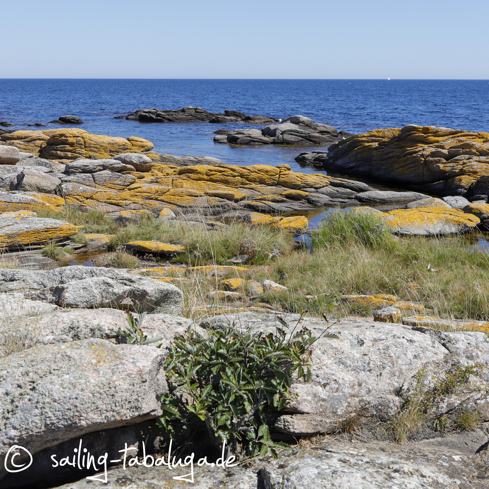 Wir satteln die kleinen Italiener und radeln zunächst ins Landesinnere in ein Naturschutzgebiet, einen wunderschönen Wald. Dort finden wir einen Wackelstein, ein Trumm von einem Findling, den man, wenn man ein paar Muckis in den Armen hat, zum Wackeln bringen kann. Mein Bernie schafft das natürlich, ich nenne ihn ab jetzt Arnie 😉. Nach der Tour in den Wald und einigen absolvierten Höhenmetern zieht es uns an den Strand, es ist traumhaftes Wetter. Wir suchen uns ein freies Plätzchen, was eigentlich nicht schwierig ist. Dummerweise meint kurze Zeit später, ein übermotivierter Fussballvater seine Kinder zum Trainieren bewegen zu müssen. Lautstark natürlich. Die gleichen Kinder möchten dann aber bitte nicht ins Wasser, iiiiihh, Quallen!! Irgendwie ist uns das Gejammer und Geschrei schnell zu anstrengend und wir beschließen, zur Tabaluga zurück zu kehren. Nach dem Abendessen drehen wir noch eine Runde durch den Hafen und gönnen uns ein selbstgemachtes Bio-Eis in einem kleinen Hafenshop. Beim Bezahlen rechne ich noch mal nach und schlucke: ein kleines Eis kostet mehr als ein Bier. Und das will in Skandinavien schon was heißen….