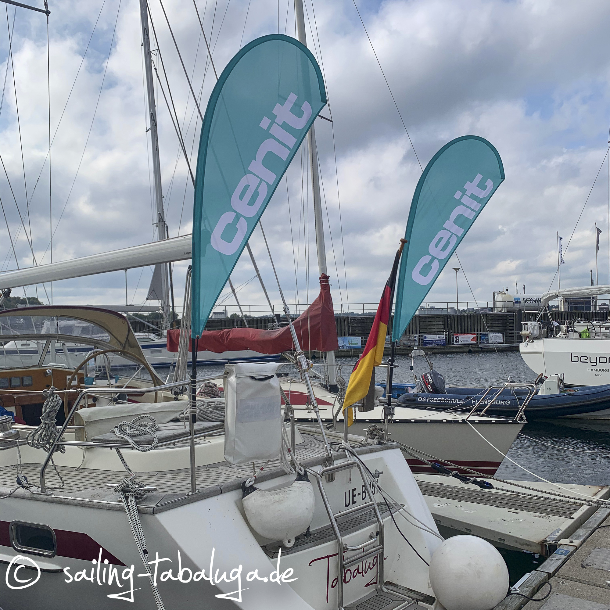 Auf gehts zum diesjährigen Company Cup 2020! Dieses Jahr sind wir nicht schon in Flensburg, sondern müssen aus Großenbrode anreisen. Die Crew aus dem letzten Jahr hat sich wieder zusammengefunden, wir freuen uns, dass Mark, Christian und Jens wieder an Bord kommen. Mark möchte gerne von Großenbrode aus den gesamten Törn mitmachen, so wird aus der Regatta ein Fahrtensegeln mit einem Zwischenstopp für ein paar Regattarunden! Wir bekommen von unserer Marketingabteilung noch mal die Beachflags gestellt, diesmal klappt die Abholung ohne Zwischenfall, denn ich bin selber in Stuttgart, um sie abzuholen.