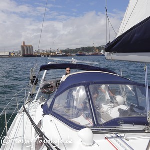 Jean-Luc zeigt uns, was seine Ti’Ouane, so ihr Name, kann und wir sind begeistert. Sicher, stabil, schnell. Alles bestens! Mir kommen leicht die Tränen, als ich merke, dass ich bei 20 Knoten Wind und Kurs hoch am Wind keinerlei Unsicherheit verspüre, was auf Tabaluga durchaus mal vorkommen konnte. Es ist beeindruckend. Ob der erste Eindruck sich bestätigt, wenn wir alleine segeln? Wir müssten viel neu lernen, ein anderes Rigg, der Hydraulikkiel, einfach ein ganz anderes Boot. Noch sind wir nicht soweit, dass wir aus vollem Herzen und sofort JA sagen, da es eine große Investition und definitiv eine Herzensangelegenheit ist. Wir müssen eine Nacht darüber schlafen. Jean-Luc lässt uns vertrauensvoll Schlüssel und Karte für den Hafen da und wir versprechen, ihn an nächsten Tag zuhause zu besuchen. So können wir uns nochmal ganz alleine ins Schiff setzen und den Gedanken freien Lauf lassen.