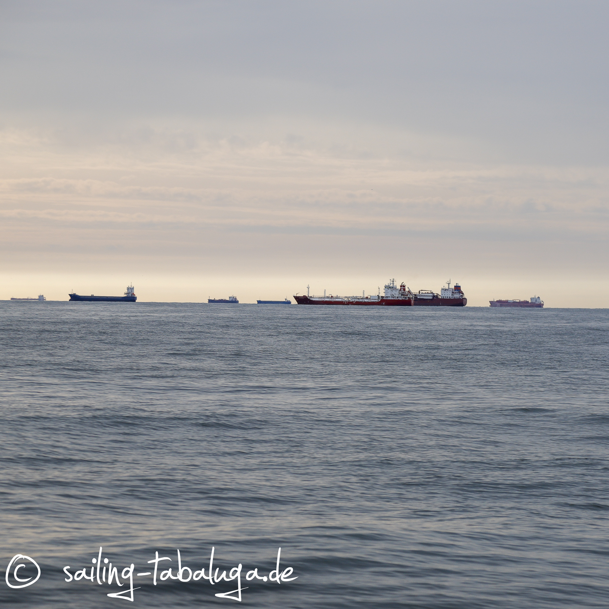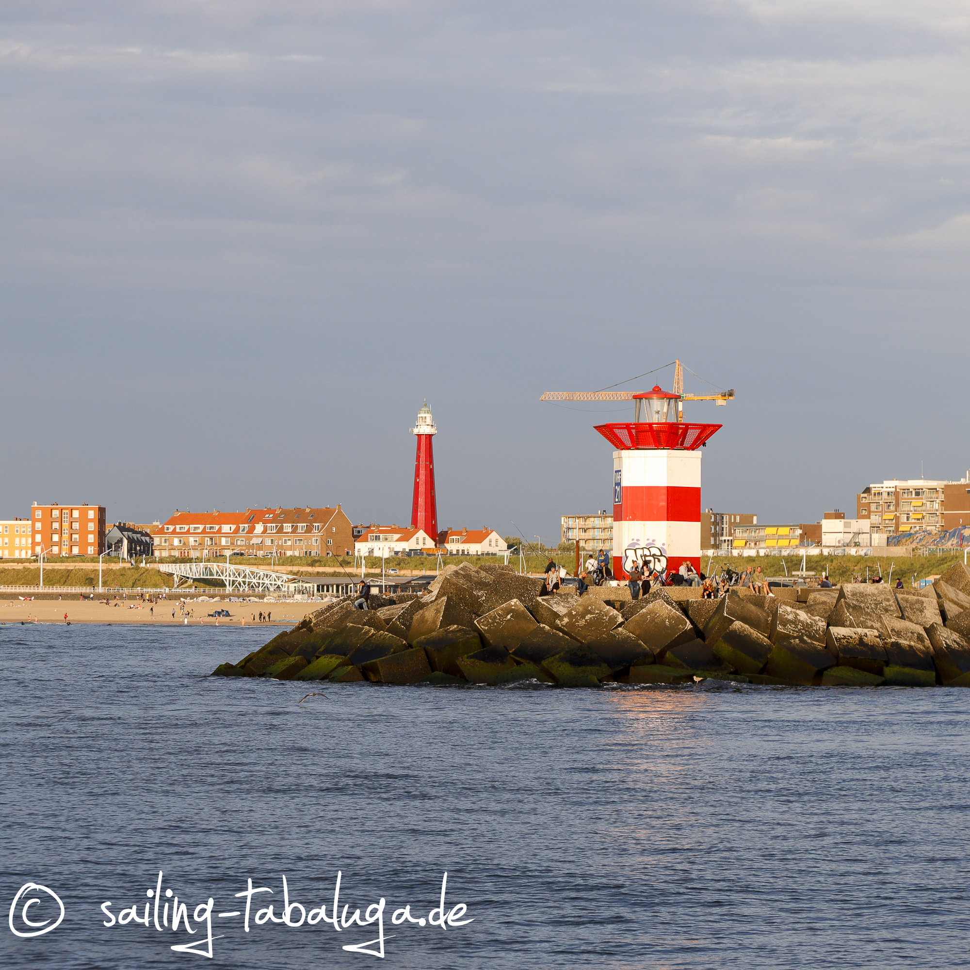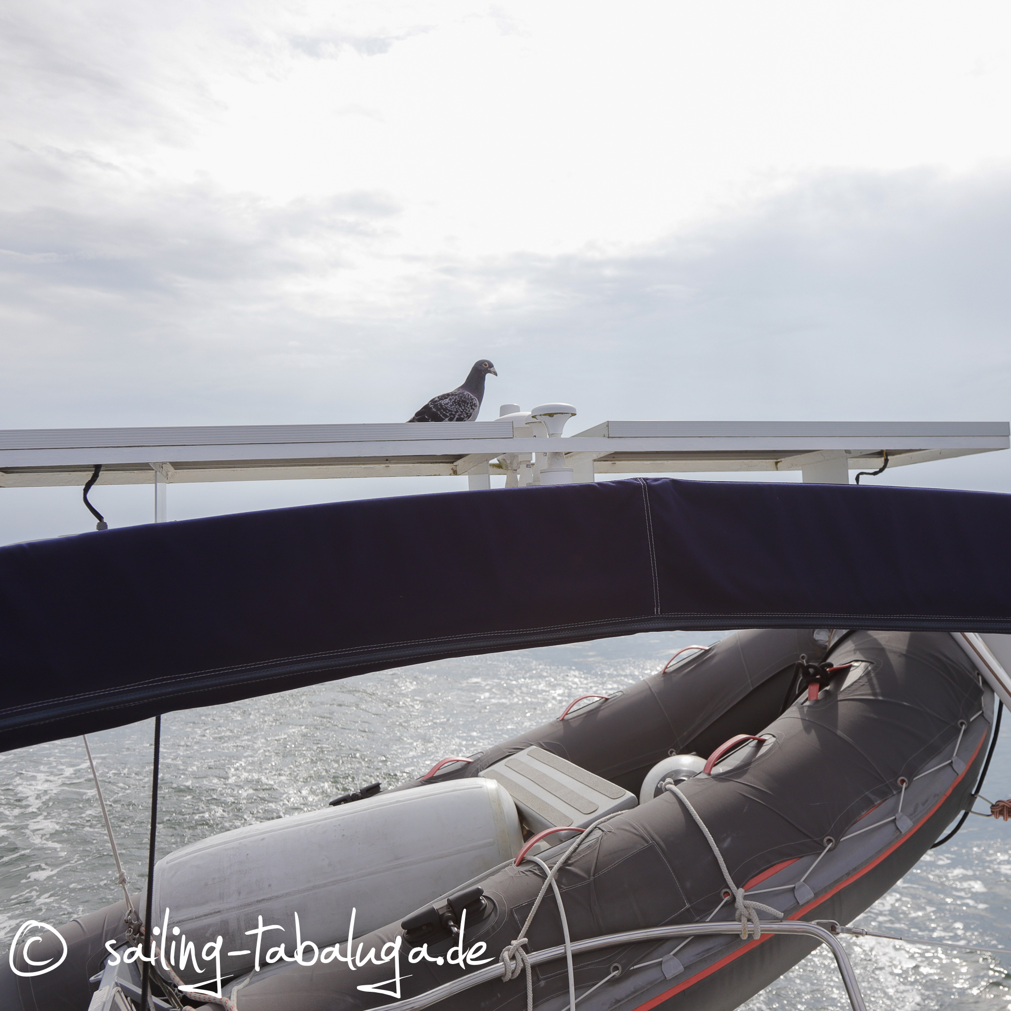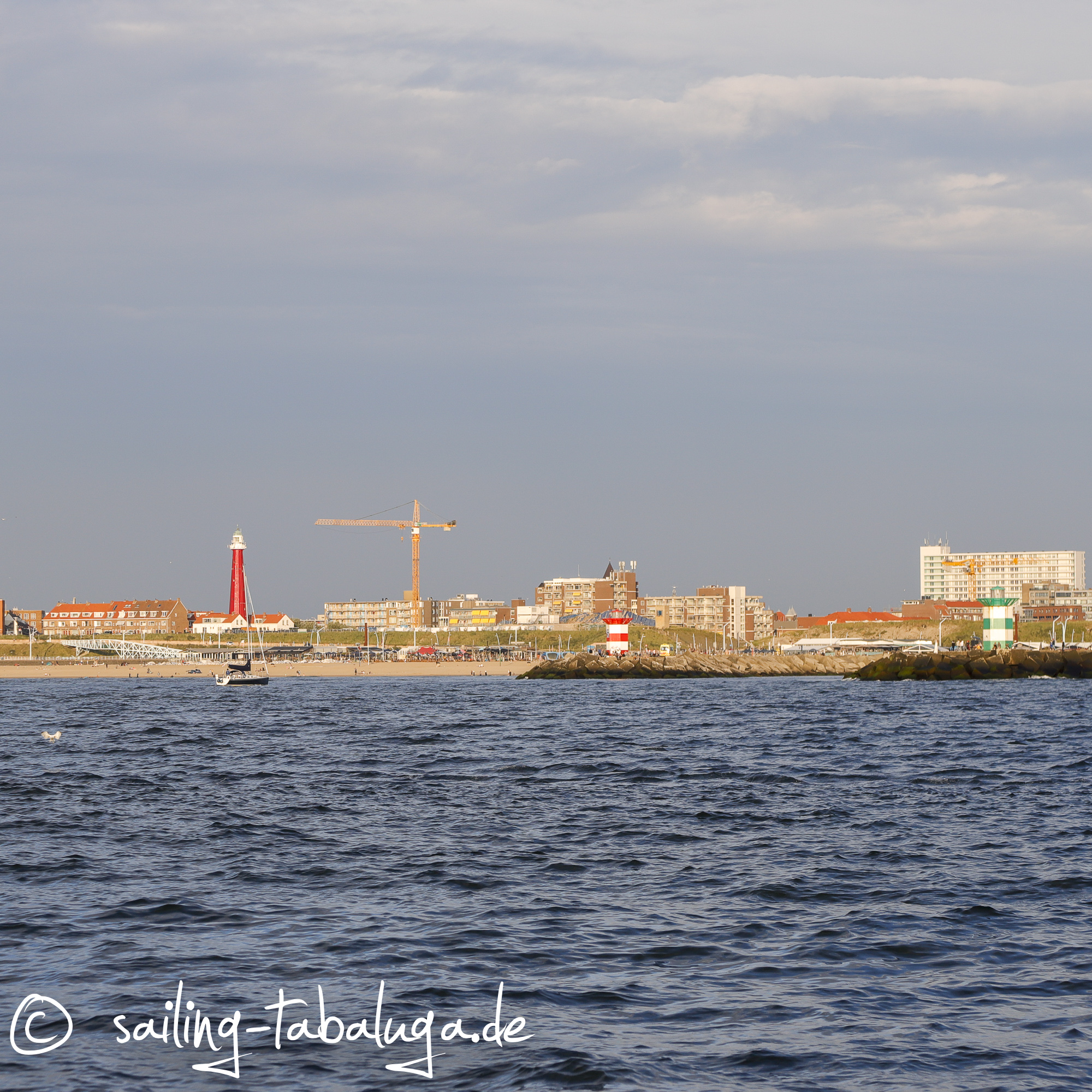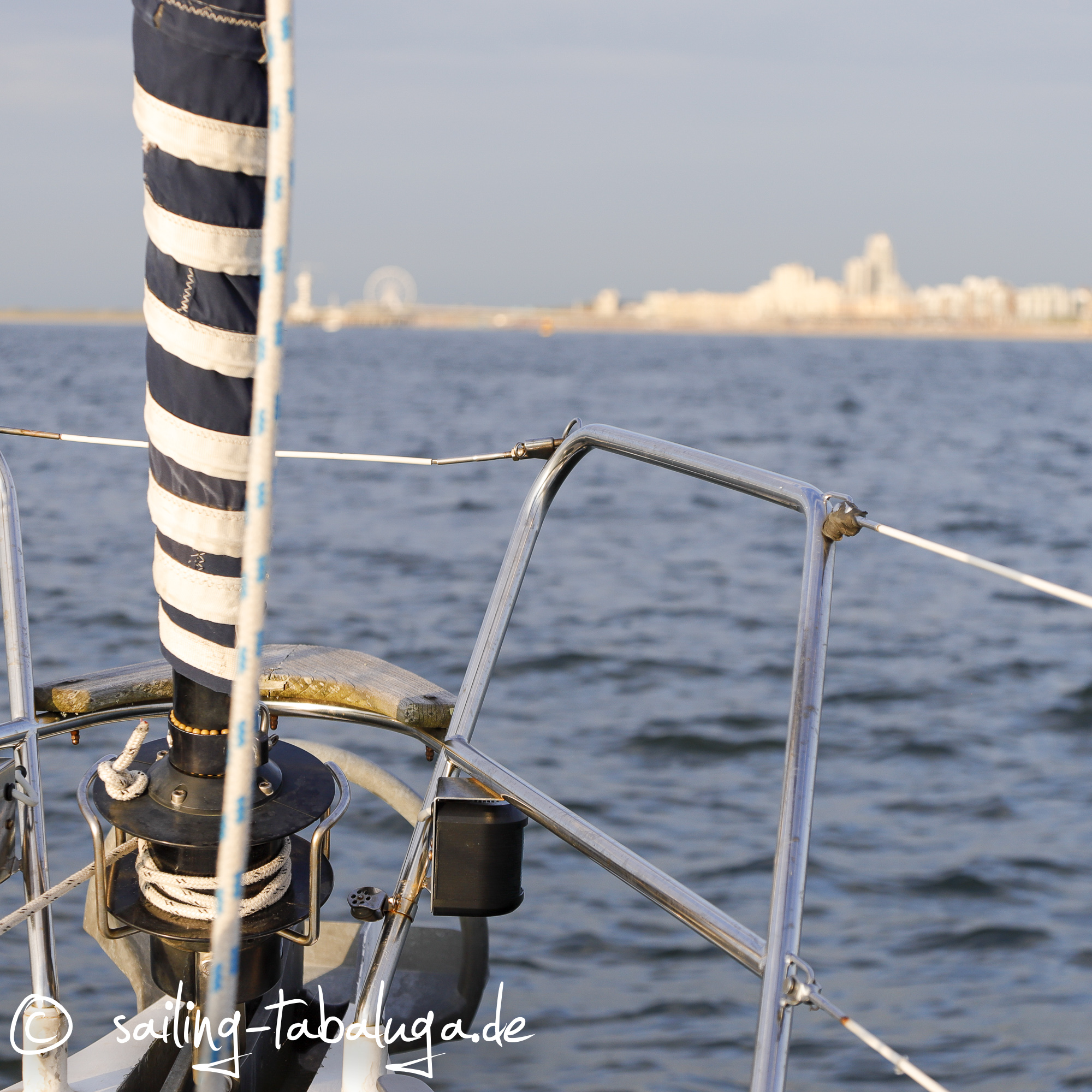 Die Fahrt Richtung Niederlande ist ruhig, sonnig und ohne Wind. Die Häfen in der Schelde sind bestimmt wunderschön, aber alle nur über Schleusen zu erreichen. Das ist uns zu zeitaufwändig und wir fahren soweit es geht Richtung Norden. Irgendwann landet ein blinder Passagier an Bord, oben auf den Solarpanels, ein Täubchen, das eine Pause einlegt. Wo es wohl herkommt? Es begleitet uns einige Seemeilen und fliegt dann wieder auf und davon. Weitere tierische Begleiter schwimmen mir vor die Linse und viele, auf Reede liegende Frachter. Die Ausfahrt von Rotterdam, Hoek van Holland, ist nicht stark befahren, was uns wundert. Den Haag gleitet an uns vorbei, bis wir irgendwann die Häuser von Scheveningen erblicken. Hier machen wir Halt.