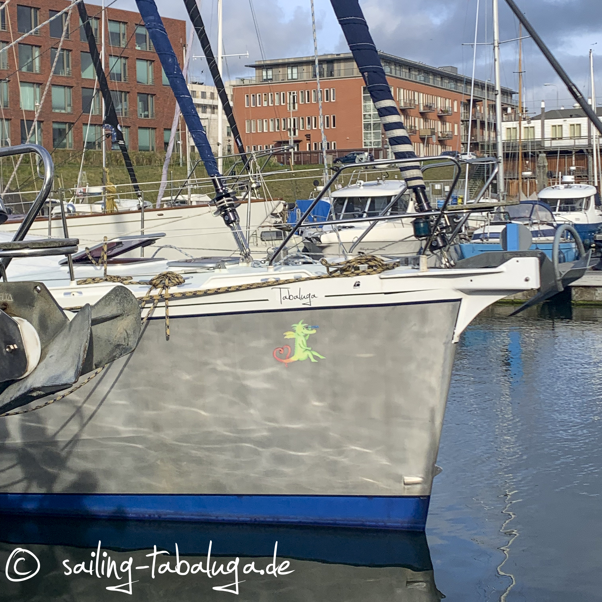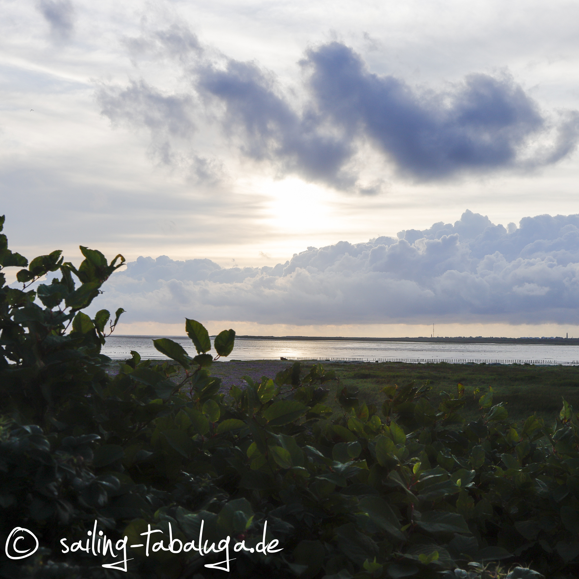 Wir kommen so gerade eben bei wenig Wind auf Borkum an und es ist, als würde ein Schalter umgelegt. Auf einmal sind schon 20kn Wind und die Boote, die nach uns noch reinkommen, müssen für den Anleger schon etwas mehr kämpfen. Wir liegen fest und sicher im Schutzhafen, nun kann der Sturm kommen!