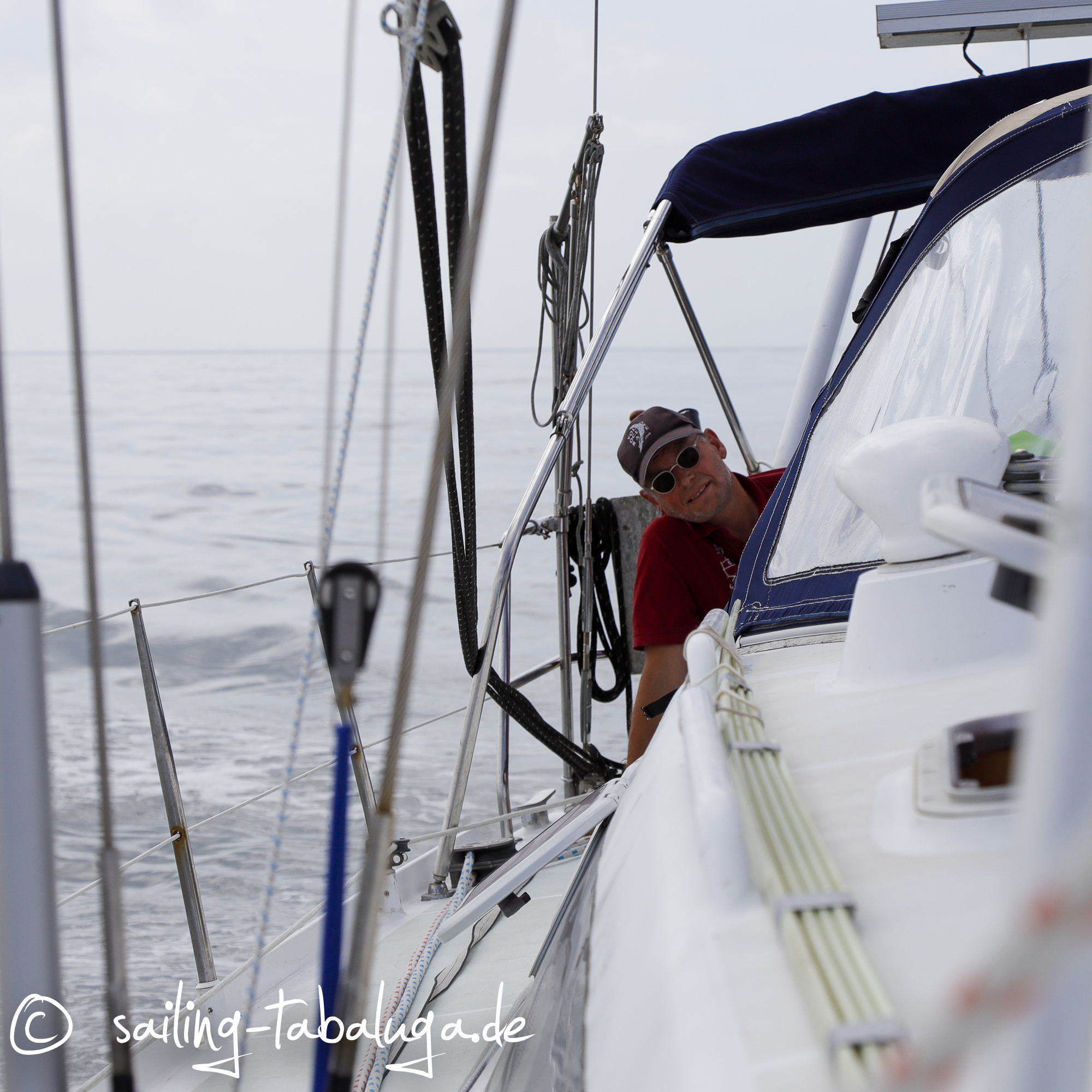 Das Karma ist auf unserer Seite und die Rückwärtsfahrt durch den Kanal ist kein Problem! Der laufende Fender kommt einmal zum Einsatz, aber ansonsten läuft alles wie am Schnürchen. Wir sind nicht die einzigen, die sich auf den Weg machen, hier im Watt richtet sich nunmal alles nach den Gezeiten. Michi bereitet uns ein fantastisches Rühreifrühstück zu und wir dürfen einen wunderbaren Sonnenaufgang im Watt erleben. Es ist windstill, die berühmte Ruhe vor dem Sturm??