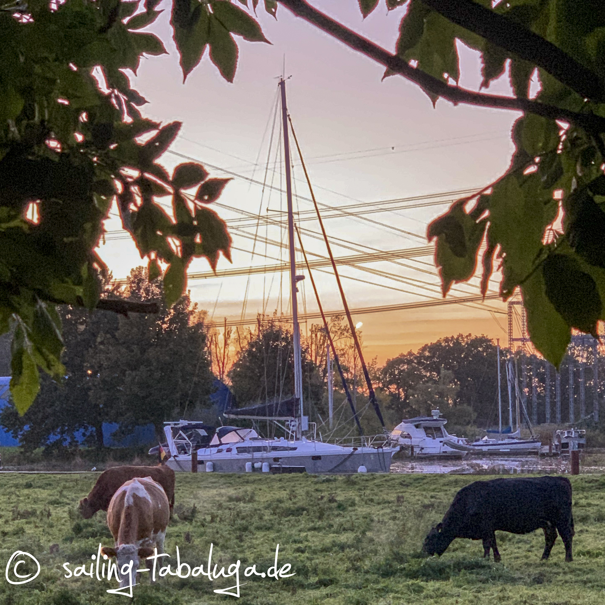 So wird es doch dunkel, als wir in Rendsburg einlaufen, aber der Hafen ist leer, anlegen ist kein Problem. Da dank Corona immer noch wenig los ist, bleiben wir an Bord und lassen die Stadtbesichtigung aus. Aufwärmen, Nudeln, Anlegerbier. Völlig ausreichend!