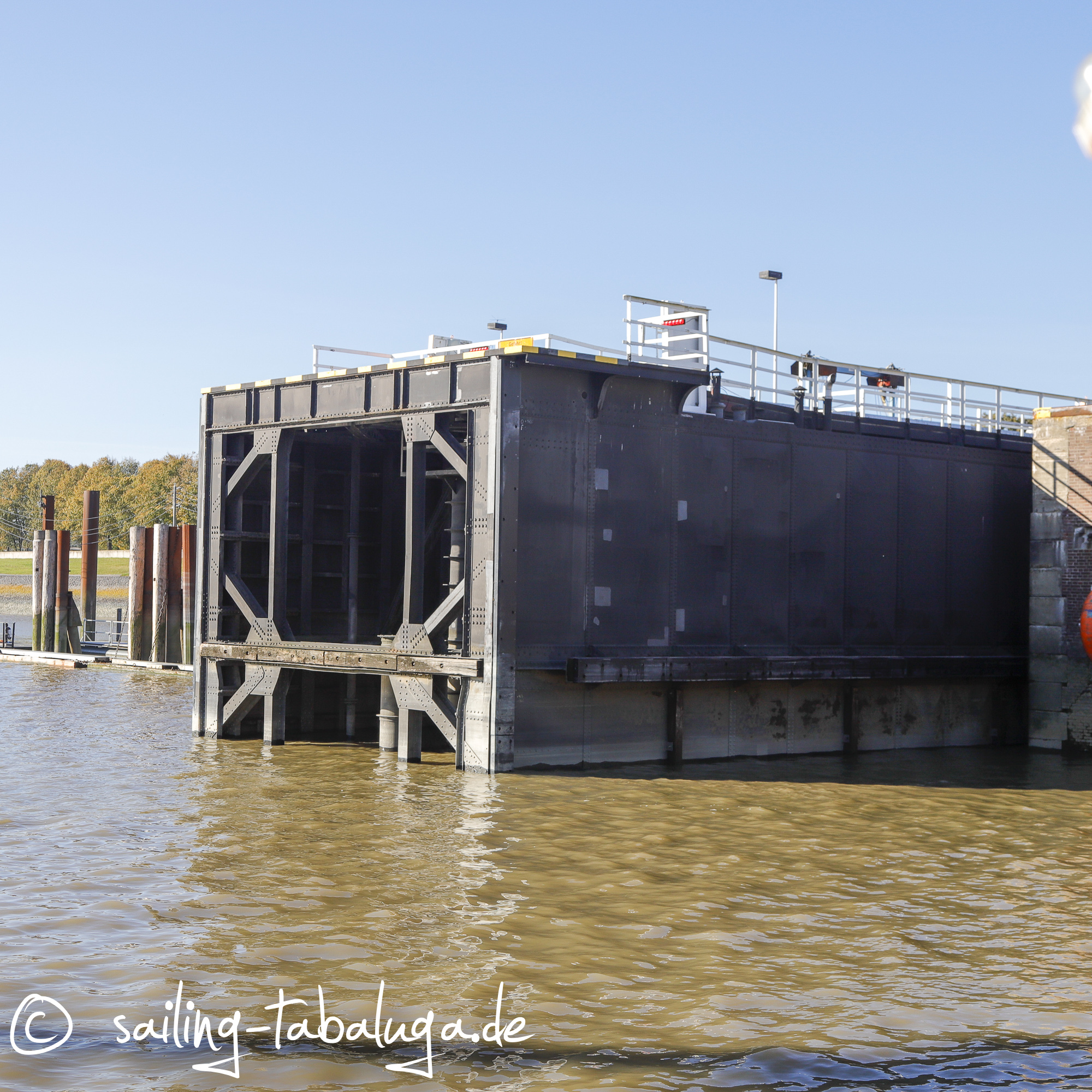 Vor der Schleuse müssen wir ein wenig warten, ziehen noch ein paar Kreise auf der Elbe. Die Einfahrt in die Schleuse und auch das Hafenmanöver gelingen uns gut, wir legen seitlich an einem Katamaran an. Dafür gibt es sogar ein Lob vom Schleusenwärter, wow!