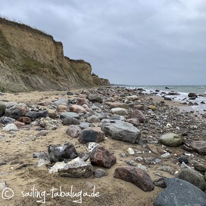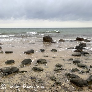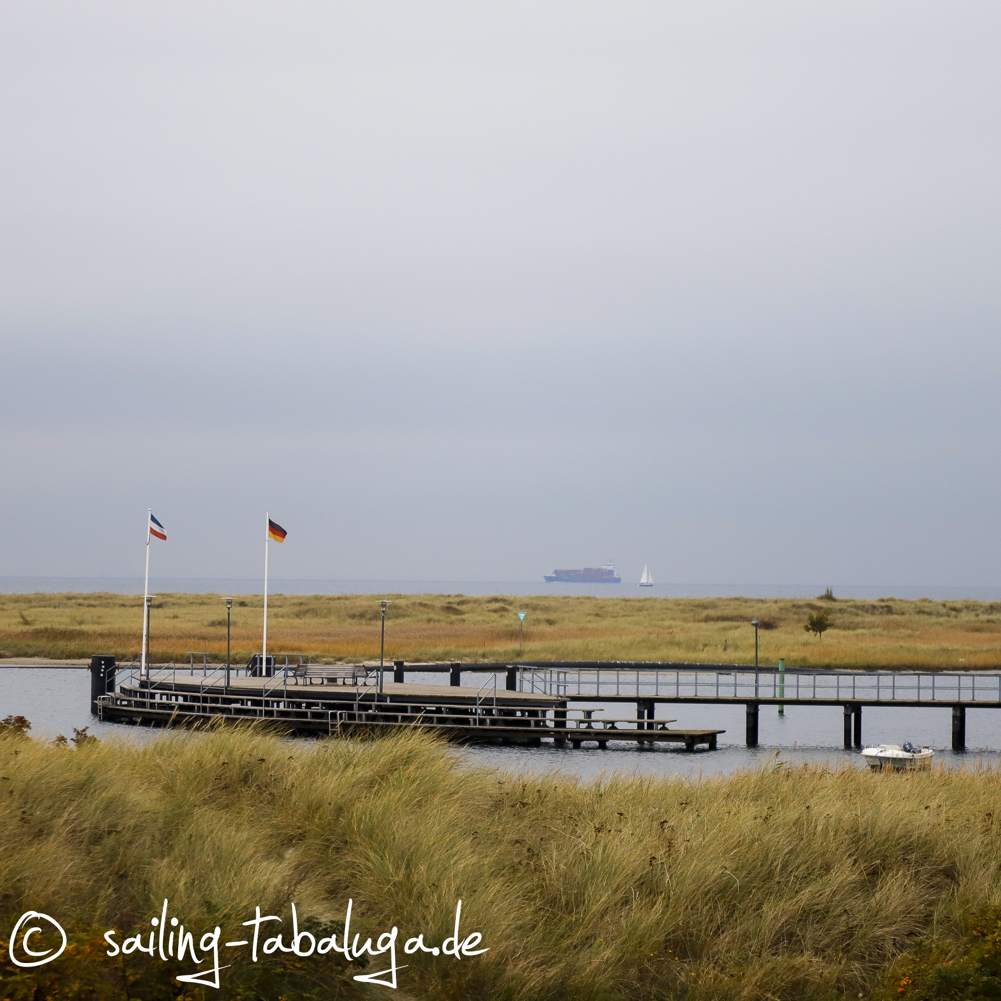 In der Schleuse Holtenau läuft es nicht ganz so entspannt, wir starten zu früh in den Schleusenbereich, während der vor uns liegender Frachte noch nicht fertig angelegt hat. Das handelt uns dieses Mal einen Anranzer vom Schleusenwärter ein. In Summe passt es dann also wieder… Kaum sind wir in der Ostsee ist Sonne weg, was soll das denn? Wir legen in der Marina Wendtdorf an. Hier treffen wir auf eine Hafenbaustelle, schade… So richtig gemütlich ist es hier nicht, der Ort ist insgesamt recht “70er”. Das Wetter macht es nicht wirklich besser, es fängt an zu regnen, also widmen wir uns wie immer in solchen Situationen den Gaumenfreuden. Als es schon dunkel ist, bemerken wir Scheinwerfer, die in unser Boot leuchten. Wir verstehen erst gar nicht, wo das herkommen kann, bis wir merken, es kommt von der Wasserseite, nicht von Spaziergängern am Steg. Bernd springt raus, es kommt ein kleines Boot in den Hafen, maximal halb so groß wie Tabaluga. An Bord ein vollkommen übernächtigter allein segelnder Holländer, der mit seinen Leuchtsignalen tatsächlich um Hilfe beim Anlegen bitten wollte. Es geht alles gut, er kann endlich ausruhen. Ich weiß gar nicht, wo er her kam, aber er sah nach einigen Seemeilen und viel Wasser von oben aus…