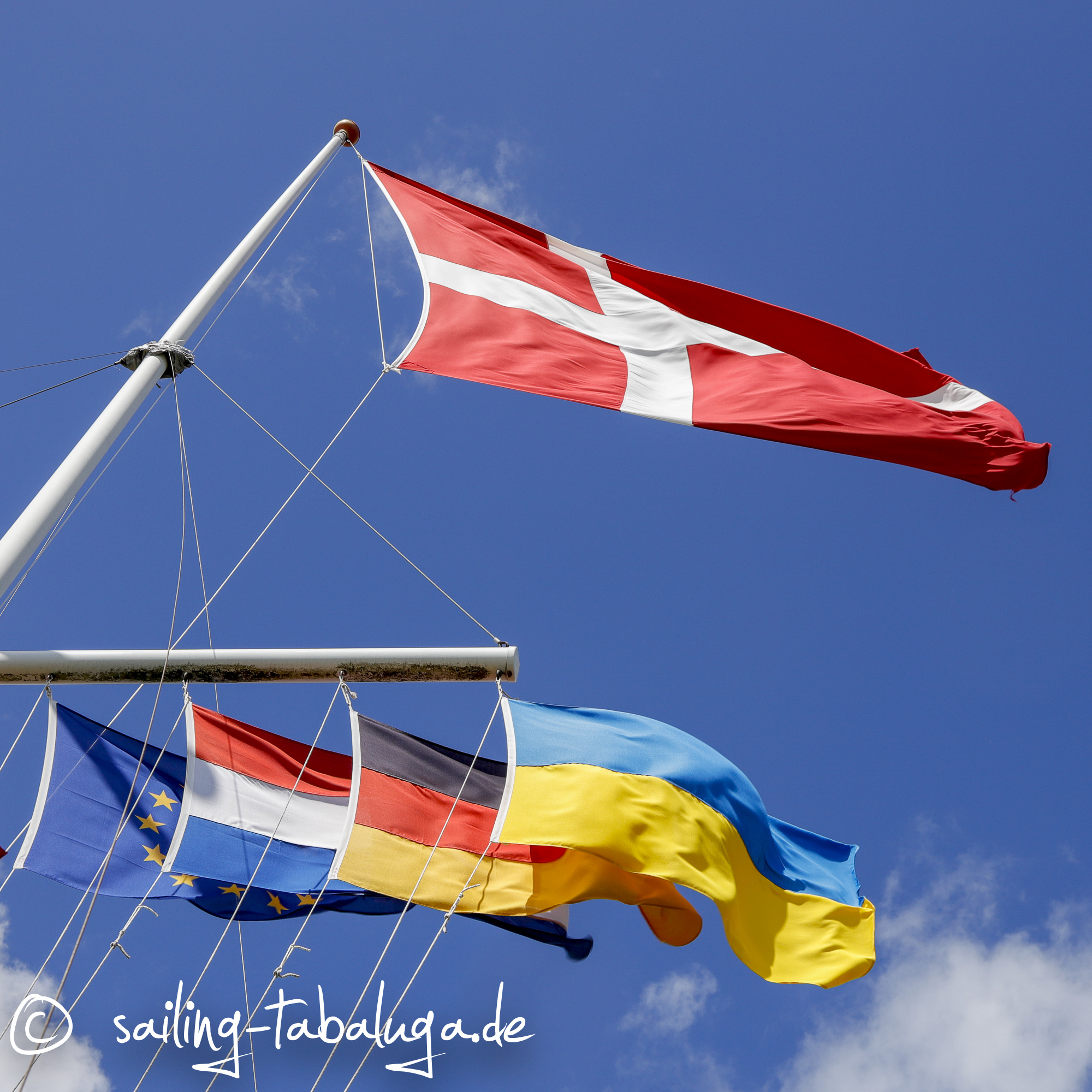 Weiter geht es quer über die Kieler Bucht, hinein in die Flensburger Förde. Beim Anlegen in dem kleinen, engen Hafen Marina Minde passiert es: rückwärts einparken ohne Bugstrahlruder ist ein optimistisches Anliegen. Der Rückwärtsgang ist drin, ein wenig zu viel Gas, ein minimal verklemmtes Getriebe und schon drücken wir mit dem Dinghi einen Dalben langsam aber sicher zur Seite. Wir beschließen, doch erstmal vorwärts einzuparken… Später kommt der Hafenmeister mit nettem dänischen Akzent und einem schelmischen Grinsen im Gesicht zu uns: ihr habt den Pfahl krummgefahren… 😉. Äh ja, stimmt, was kostet das?? Ach, das sehen wir dann…