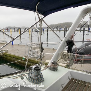 Das ersehnte Bugstrahlruder hat bis Ostern leider keinen Weg in den Bug der Tabaluga gefunden, wir sind ziemlich enttäuscht von den Versprechungen der Werft. Auch die Pläne für den Sommerhafen sind ziemlich hin und her gegangen, da die Ostsee gefühlt wegen Überfüllung geschlossen ist. Nach Großenbrode können wir nicht zurück, da unser alter Liegeplatz zu schmal ist und sie keinen besseren zur Verfügung haben. Das enttäuscht uns sehr. In Travemünde wollen wir nicht bleiben, zu städtisch und zu dreckig (von den Abgasen der vielen Fährschiffe). Aber manchmal sind solche Dinge ja ein Zeichen für Veränderung. Gefühlt telefoniert Bernd die gesamte Ostseeküste nach freien Liegeplätzen ab. Auf der Nordseite der Flensburger Förde, in Marina Minde könnten wir eine Platz bekommen. Das ist schon Dänemark!! Wir fahren an einem trüben Wintertag hin und beschließen, dass es hier schön sein könnte. Wenn wir versuchen, den Elbtunnel zu den schlimmsten Zeiten zu vermeiden, sind wir auch nicht wesentlich länger unterwegs als nach Großenbrode. Wir freuen uns also auf den dänischen Sommer!