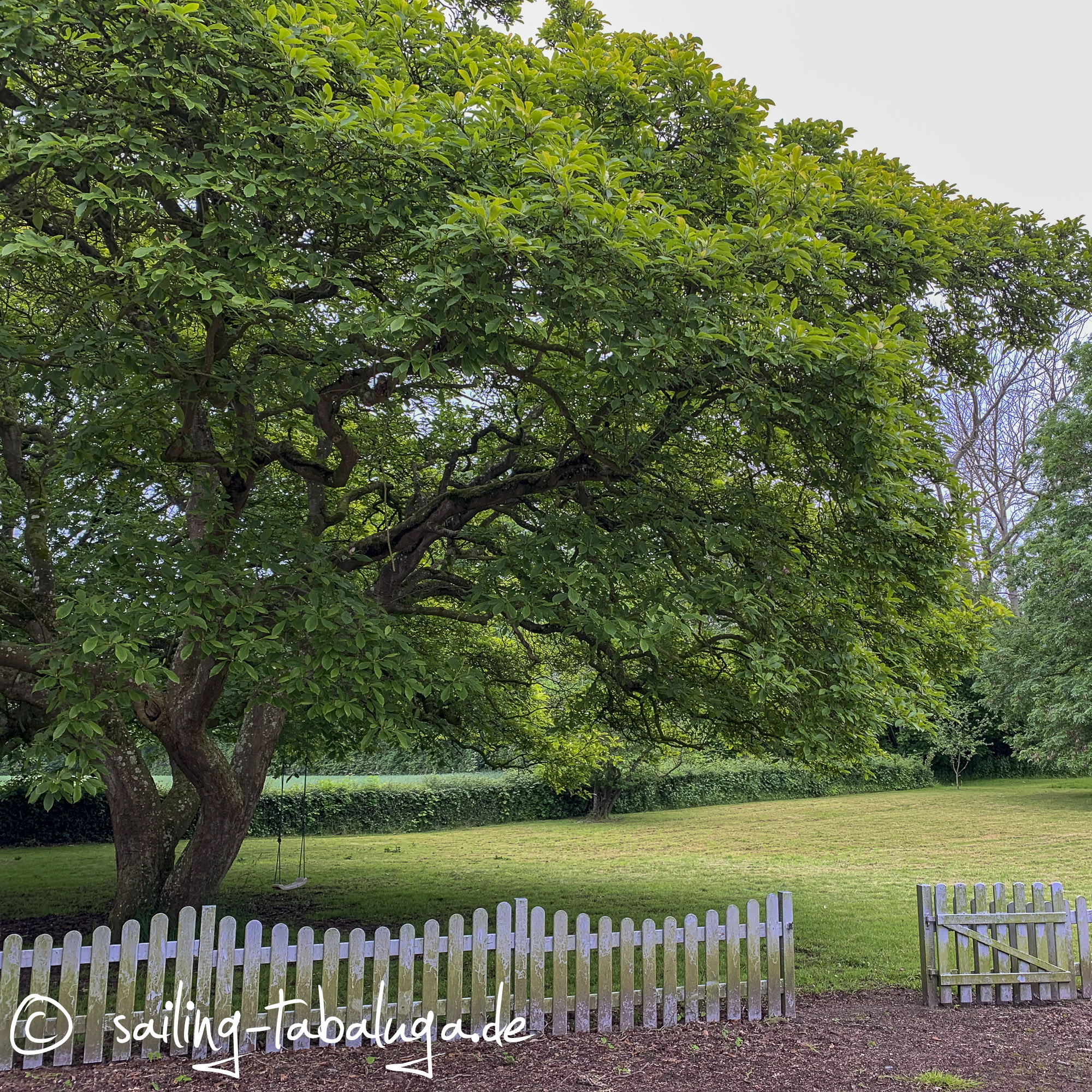 Nachmittags suchen wir dann unser Ferienhaus. Es geht weit aufs Land hinaus, irgendwo im Nirgendwo, aber mit Meerblick finden wir ein altes Gehöft mit riesigen, leerstehenden Ställen, einem zwar bewohnten, aber nicht wirklich gepflegtem Haupthaus und eben unserem Ferienhaus. Früher nannte man sowas Gesindehaus. Von außen sehr hübsch, weiß gestrichen mit einem fantastischen alten Baumbestand, unter anderem einer uralten Magnolie, im Garten. Innen: auch uralt. Aber was soll’s, wir haben ein Bett, ein Bad und eine gut ausgestattete Küche. Nach einigem Suchen in Unterlagen finde ich auch den WLAN Code, so dass wir arbeiten können. Ich bin ein bisschen in Sorge, ob meine Schimmelallergie mir hier begegnen wird. So muffig, wie das alte Haus ist, würde es mich nicht wundern 😒. Die Umgebung und die fußläufig gelegene Küste sind allerdings traumhaft schön!