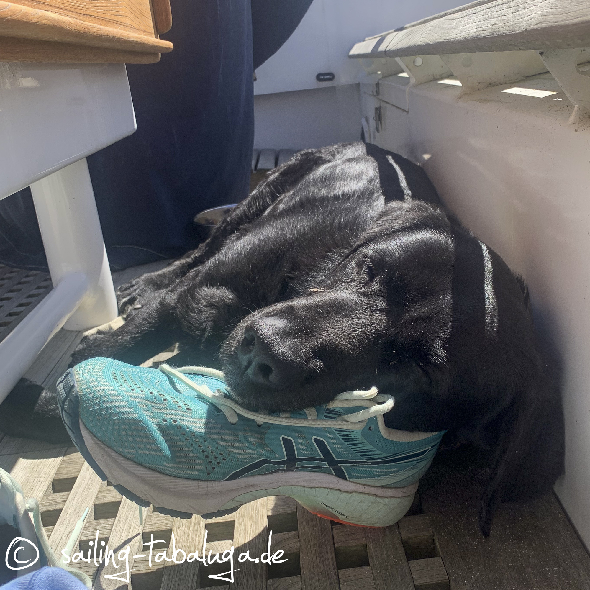 Endlich ist es soweit, der Termin für Tabalugas Werftaufenthalt rückt näher. In der Woche nach Pfingsten soll das Bugstrahlruder installiert werden. Da mein Skipper natürlich dabei sein möchte, mieten für uns für die Zeit ein Ferienhaus und arbeiten von dort. Mindestbedingung: WLAN muss funktionieren und Hund muss mit, ansonsten sind wir nicht so anspruchsvoll. Das günstigste Angebot nehmen wir, mal sehen was dabei heraus kommt. Die Feiertage verbringen wir an Bord und schippern einen Hafen weiter in die Marina Toft. So entspannt wie wir immer sind, denken wir nicht großartig über Brückenzeiten in Egernsund nach, sondern segeln ein bisschen vor uns hin. Als wir in die Nähe der Brücke kommen, sehen wir, dass die Lichter angehen für baldige Öffnung. Ui, Motor auf Vollgas, vielleicht schaffen wir es ja. Der Brückenwärter ist gnädig und wartet - wie oft sind wir jetzt als letzte durch eine Brücke oder in eine Schleuse gefahren? Keine Ahnung 🤔. Aber besser spät als nie! In der Marina Toft können wir direkt unter dem Kran anlegen und verbringen noch eine Nacht an Bord. Pfingstmontag ist mal wieder kein schönes Wetter, aber das hindert uns nicht daran, Joggingklamotten anzuziehen und nach Marina Minde zu laufen und das Auto zu holen.