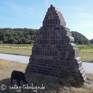 Unsere Routenplanung ist ja auch immer abhängig von Brückenhöhen, aber wir wissen leider nicht ganz genau, wie hoch unser Mast ist. Im Handbuch steht etwas von ca. 19m über Wasser, François ist sich aber sicher, dass Cybéles Mast über 20m hoch ist. Also hilft nur nachzumessen. Der Käptn lässt sich in den Mast ziehen und wir versuchen, die Höhe auszuloten. So ganz gelingt es bei relativ viel Wind und einem viel zu dünnen Bändsel nicht. Wir kommen aber auch auf ca. 20m. Die Messung müssen wir definitiv noch mal überprüfen.