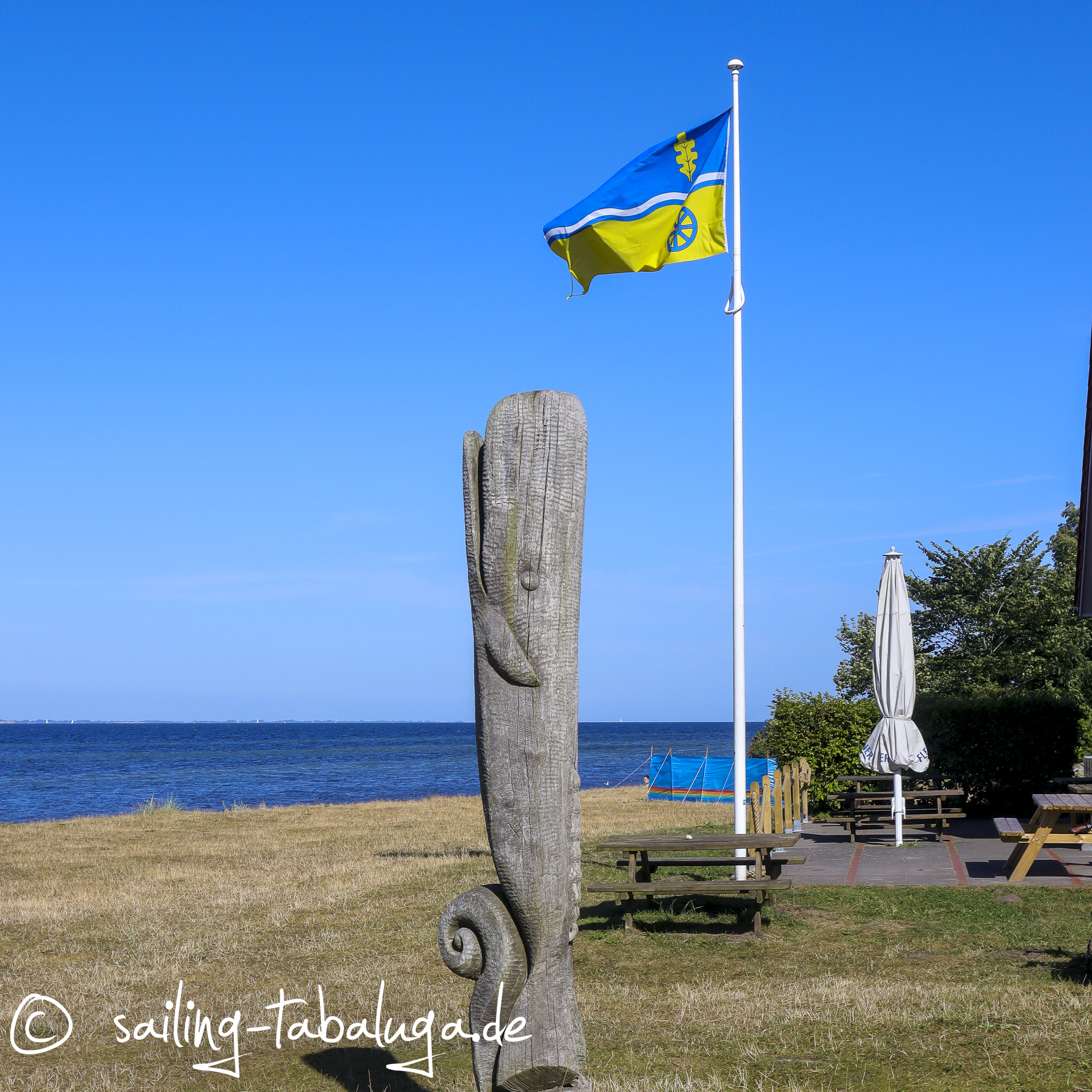 Der Tag beginnt ohne Sonne und mit wenig Wind, der dann auch noch nachlässt. Segel gesetzt, Motor gar nicht ausgemacht, Segel irgendwann wieder runtergeholt: es ist sinnlos, segeln zu wollen. Wir nehmen Kurs auf Nyborg, eine etwas größere Stadt mit einem großen Hafen. Hier können wir das angesagte, nicht ganz so tolle Wetter aussitzen, die Vorräte aufstocken und den Weg in die nächsten einsamen Ankerbuchten planen.