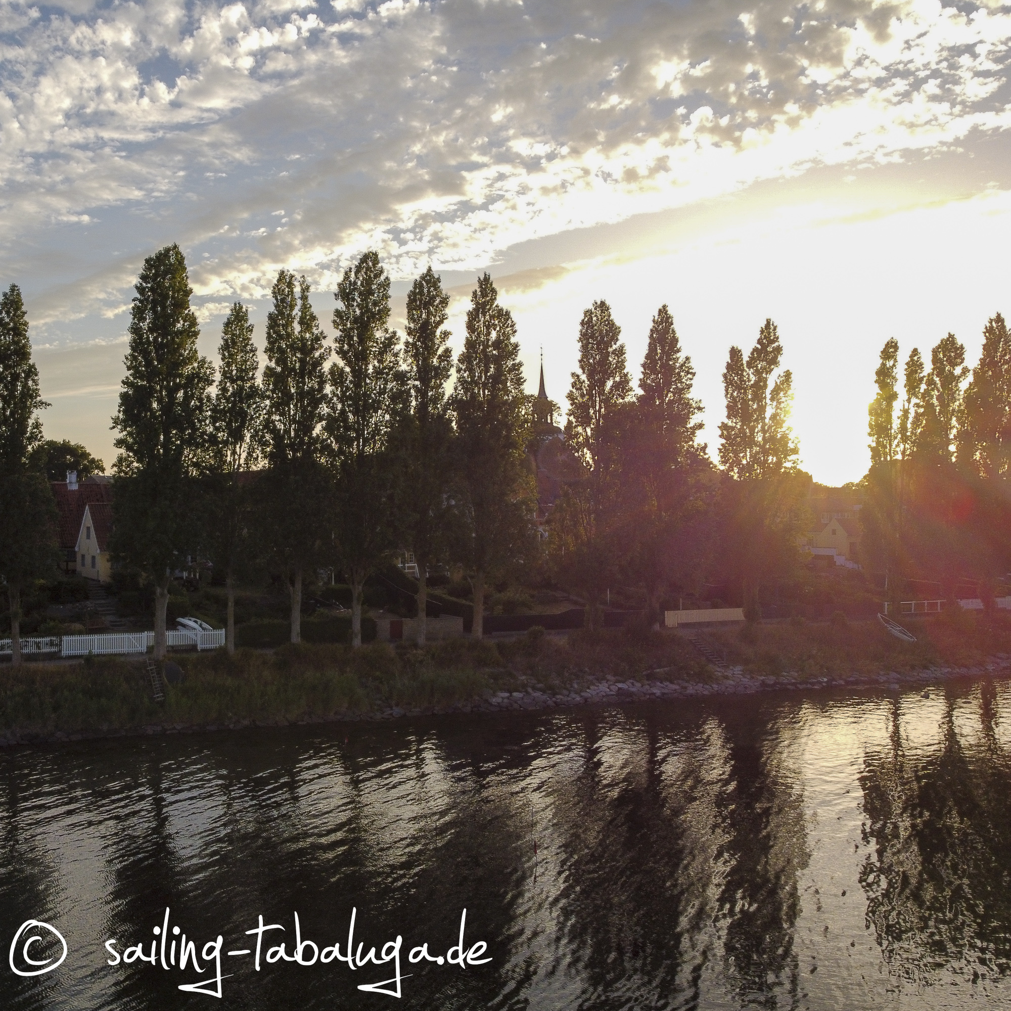 Abends kommt ein Segelboot nach dem anderen herein, Holländer. Für sie war ein kompletter Steg reserviert, das hatten wir bereits am Abend zuvor gesehen. Die “Ocean People” sind eine Vereinigung, mit der man in der Flotille größere Törns machen kann. Recherchen ergeben, dass sie von Den Helder über die Nordsee nach Norwegen und zurück über Dänemark und den Nordostseekanal unterwegs sind. Heute stoppen sie also in Nyborg, 17 Schiffe zählen wir. Die erwartete Stegparty fällt allerdings aus, anscheinend steht doch Segeln im Vordergrund 😉.