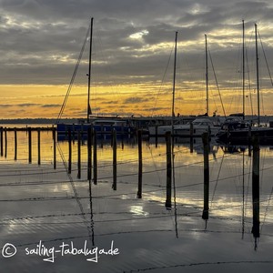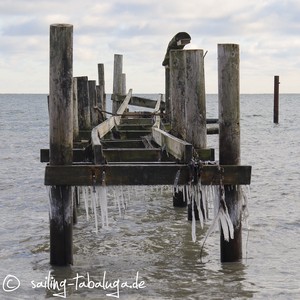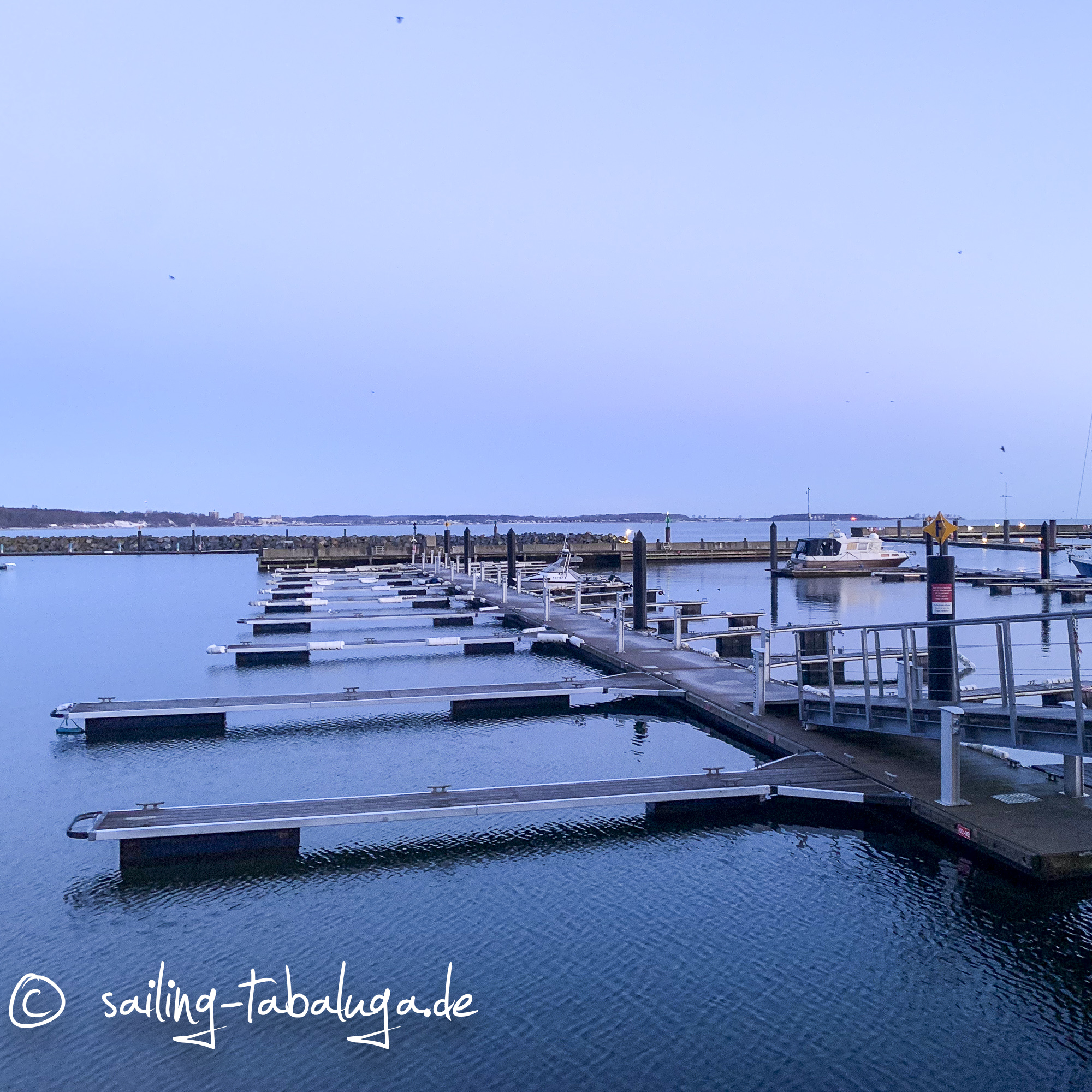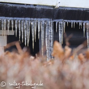 Liese und ich fahren mit dem Auto nach Laboe und nehmen unseren tapferen Skipper in Empfang, es ist Februar, die Nächte sind frostig kalt und der Hafen ist noch leer. Tabaluga kommt an Land und wir verabschieden uns vorerst in den Skiurlaub in die Alpen.
