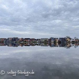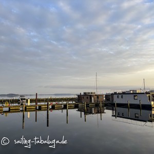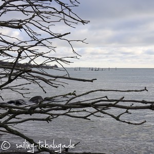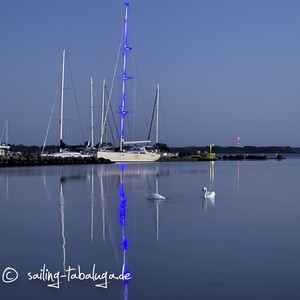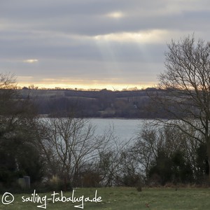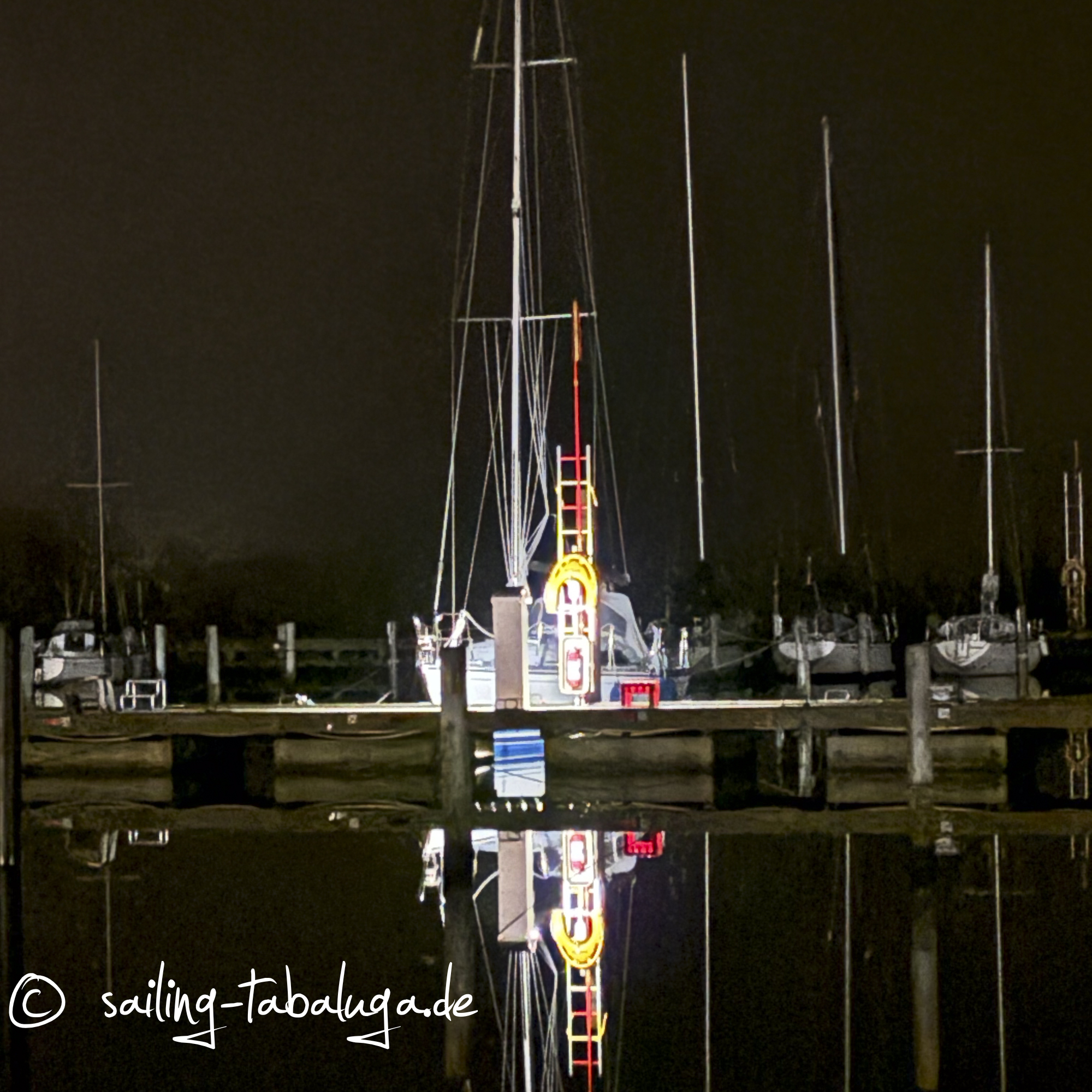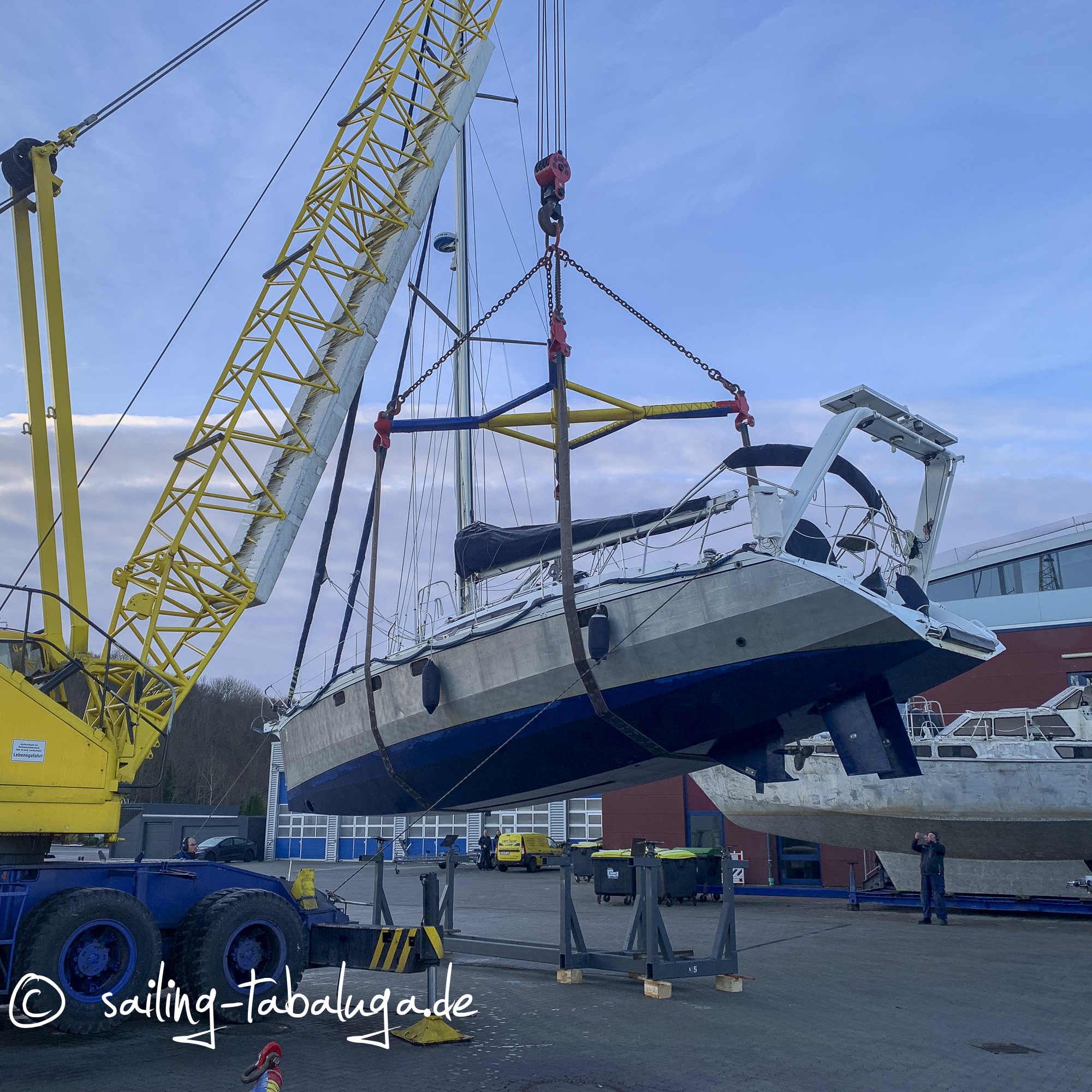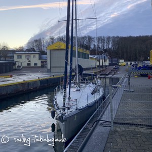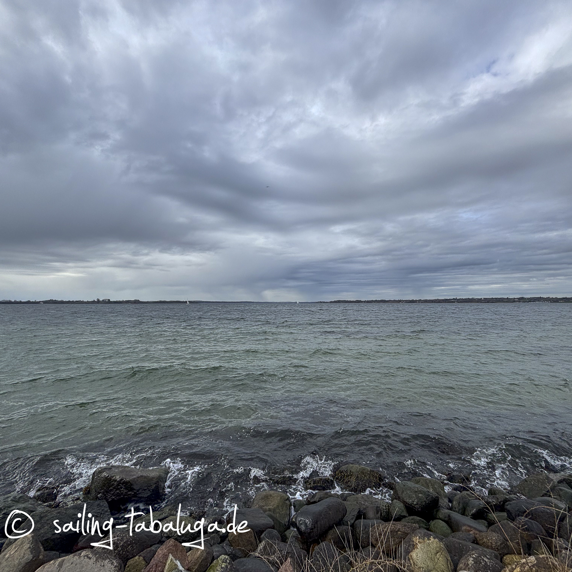 Ende letzten Jahres haben wir Tabaluga noch mal aus dem Wasser geholt, um die Anoden zu wechseln und den Unterwasseranstrich neu zu machen. Dabei fiel uns auf, dass rund um das Bugstrahlruder komische Stellen im Aluminium zu sehen waren. Da das Ruder ja erst vor 1,5 Jahren eingebaut wurde, haben wir das natürlich der ausführenden Firma gemeldet. Die sind kulant und wollen die Reparatur übernehmen, dafür soll Tabaluga aber nach Laboe kommen. Das Wetter ist im November und Dezember natürlich nicht sehr berechenbar. so dass sich kein geeignetes Wetterfenster auftut. Auch der Januar spielt noch nicht mit, erst im Februar ergeben sich ein paar schöne Tage. Mit Bauchgrummeln stimme ich zu, dass der Skipper alleine segelt und ich den Fahrdienst übernehme. Es ist immer fürchterlich umständlich, ein Auto hier und eins dort zu parken.